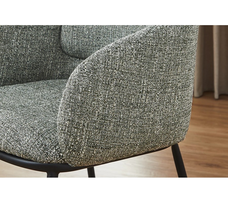 Designová skandinávská jídelní židle Tromso s opěrkami se zeleným melírovaným potahem a černou podstavou 56 cm
