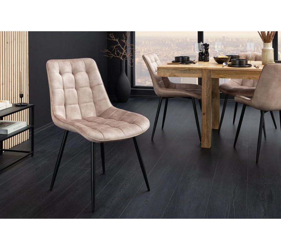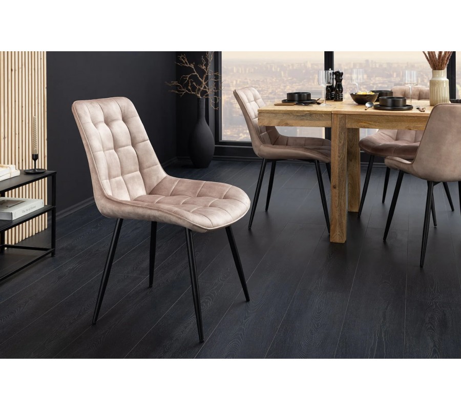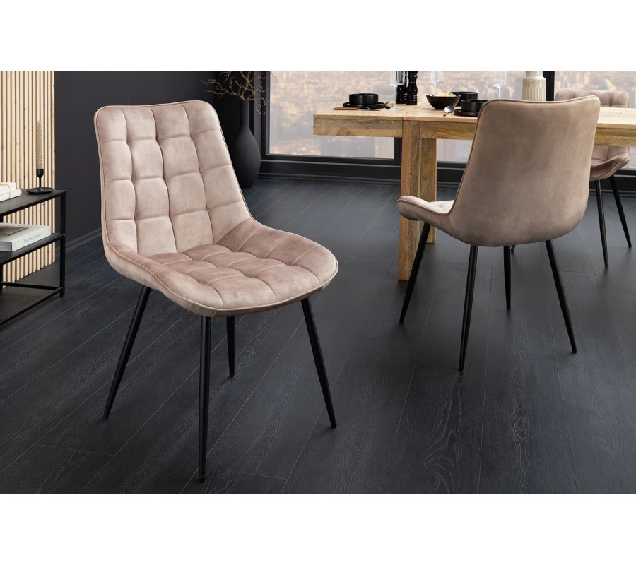 Designová skandinávská jídelní židle Moritz se sametovým potahem v šampaňském béžovém odstínu s prošíváním 51 cm