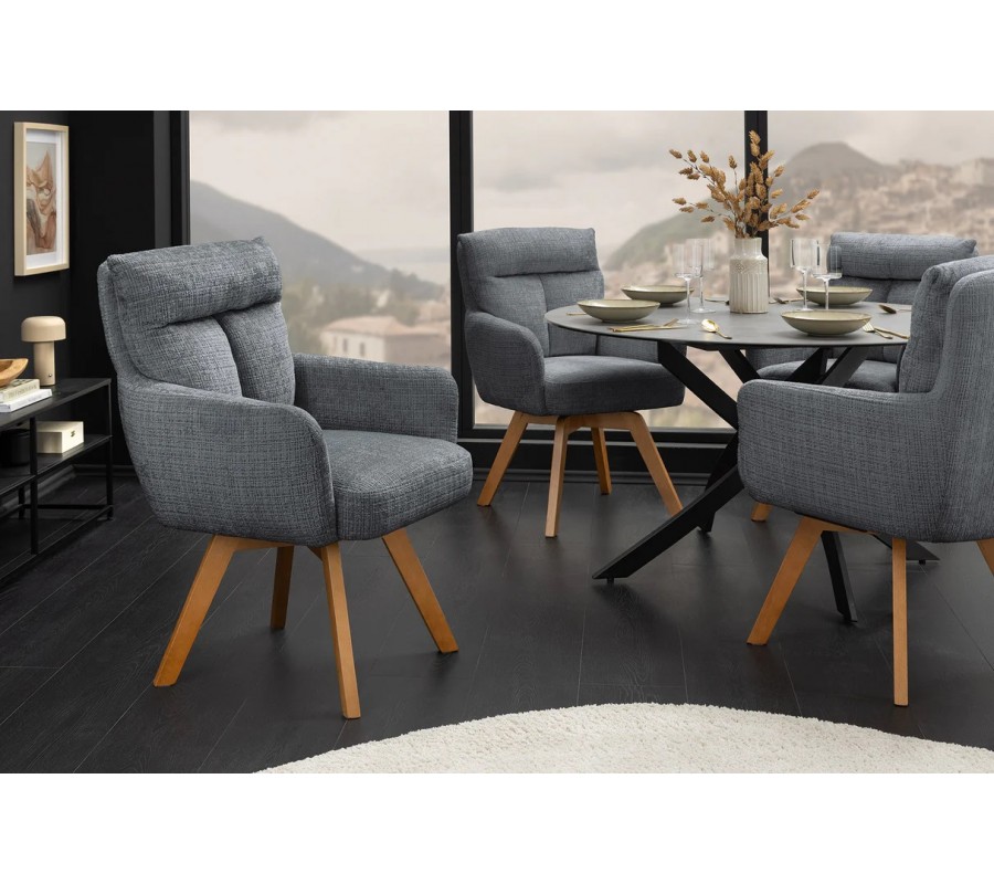 Moderní designová šedá jídelní židle Dover s otočným sedátkem s opěrkami a žinylkovým potahem s hnědýma nohama 61 cm