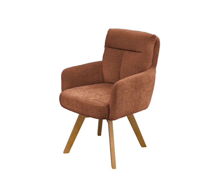 S barvou potahu krásně korespondují nohy z masivního bukového dřeva v naturální světle hnědé barvě. Mají štíhlý a zešikmený hranatý profil, který poskytuje nábytku dobrou stabilitu. Pod sedadlem je propojuje výztuha ve tvaru X s otočným mechanismem.
