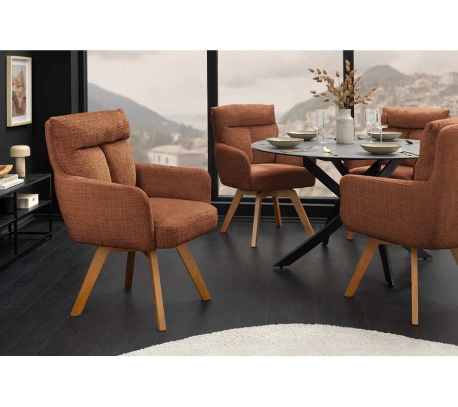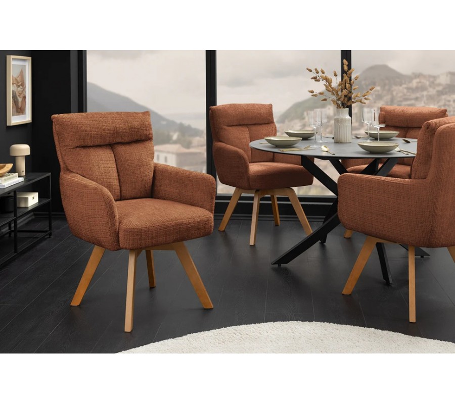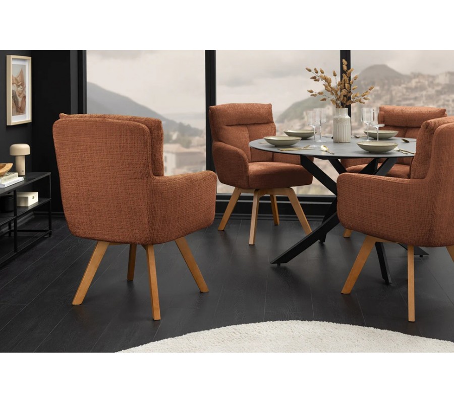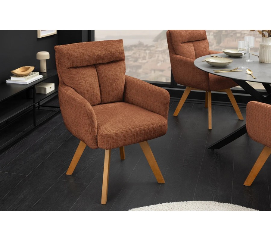 Jídelní židle Dover je ideálním spojením moderního stylu s teplým vizuálem zemitých tónů. Bukové dřevo přináší do kompozice dotek skandinávské estetiky a oceníte i maximální komfort, který poskytne čalouněné sedátko, otočné o 360°.