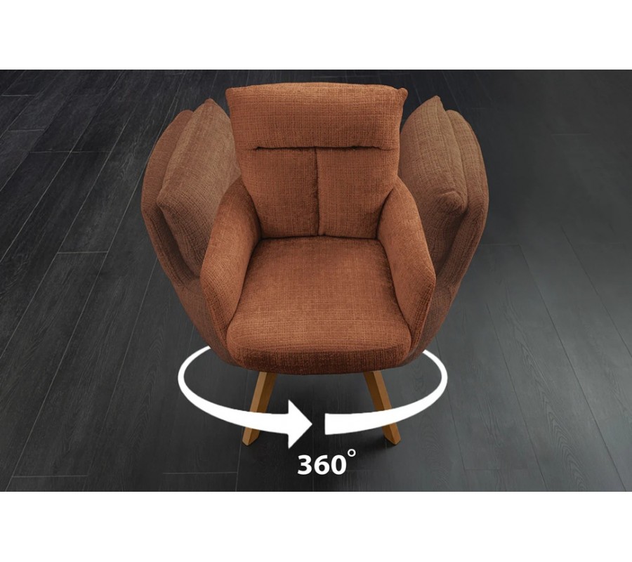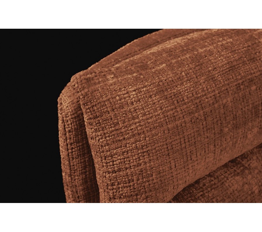 Designu dominuje výjimečný ženilkový potah s výraznou měkkou plyšovou strukturou a sametovým leskem. Je příjemný na dotek a mikrovlákno mu zaručuje výbornou odolnost a pevnost. Provedení v rezové hnědé barvě působí útulným a teplým dojmem.