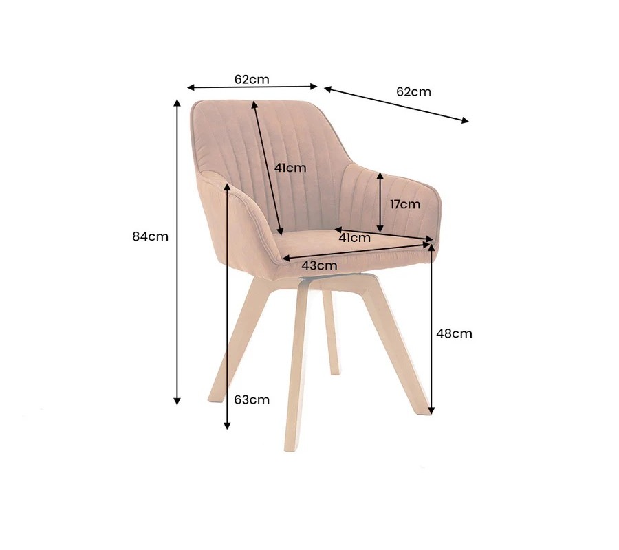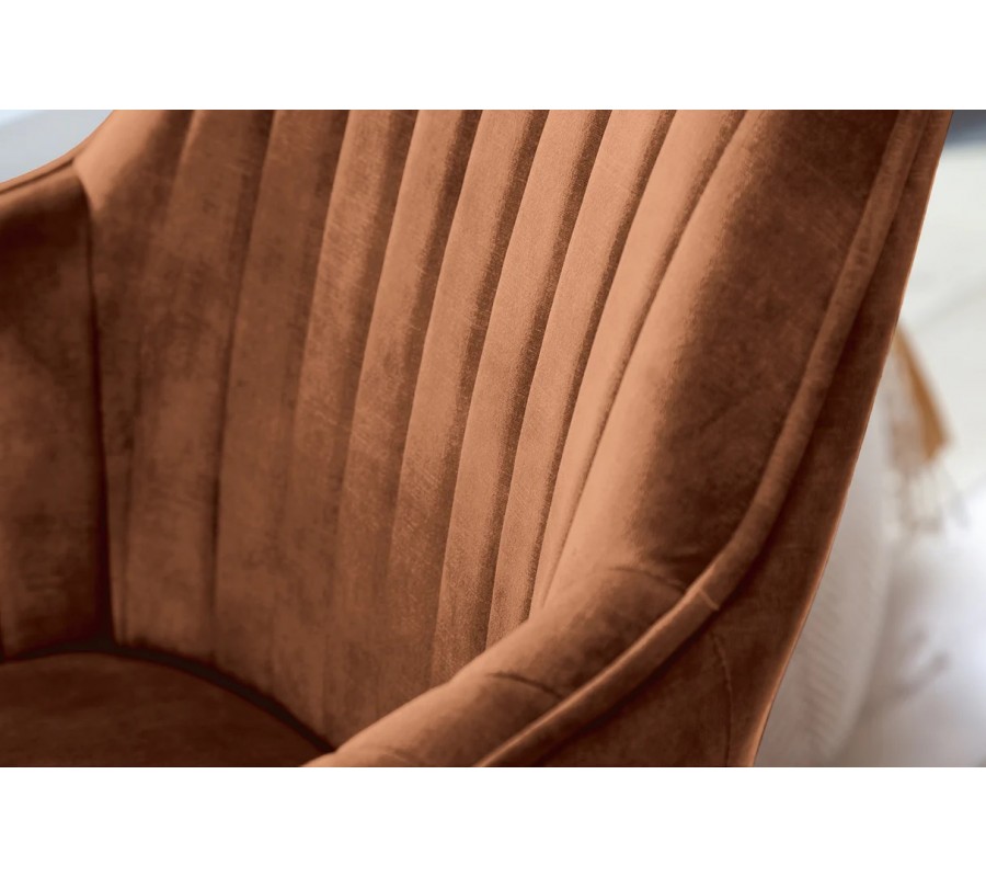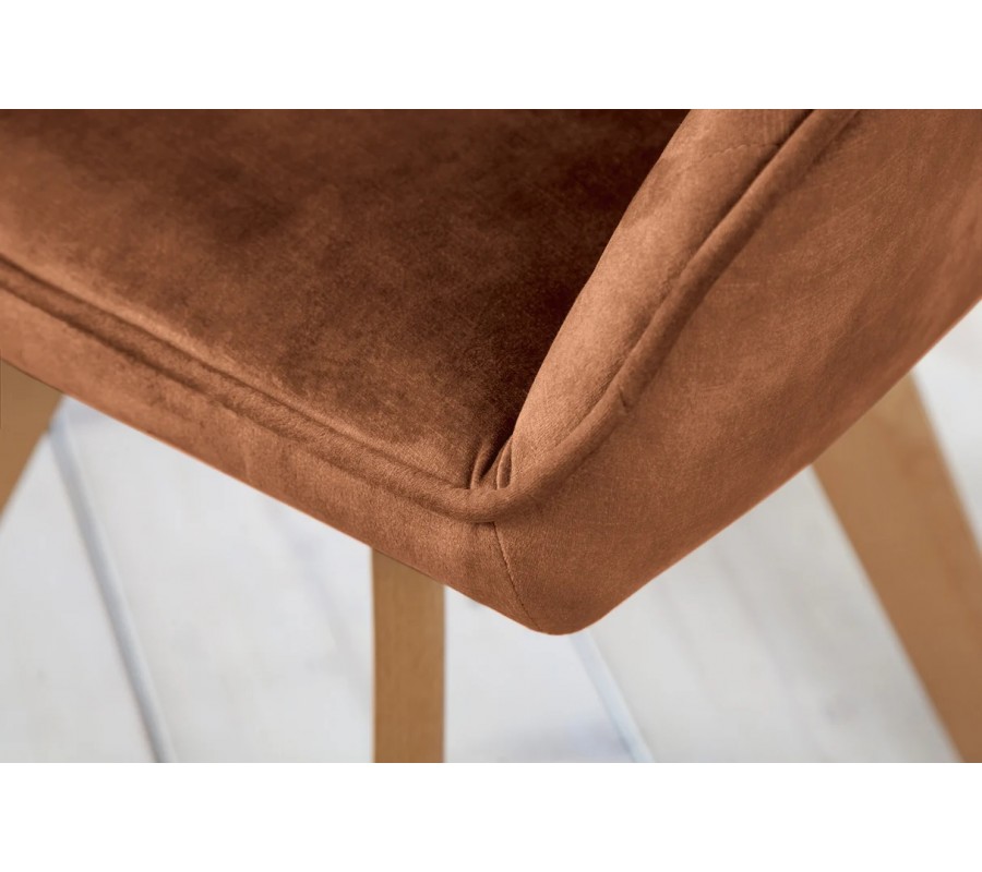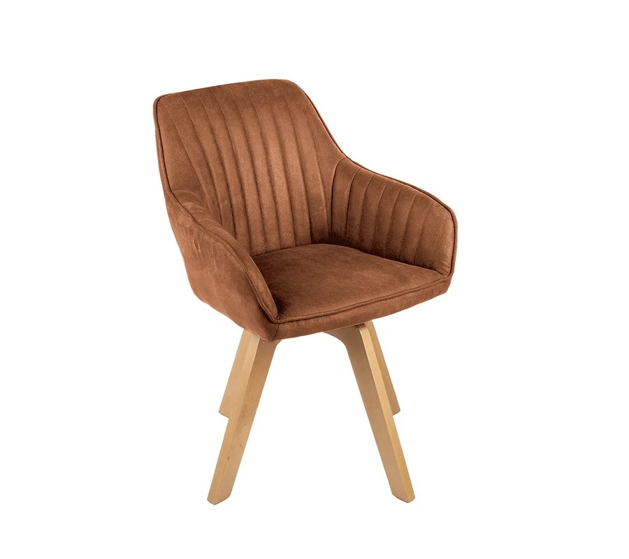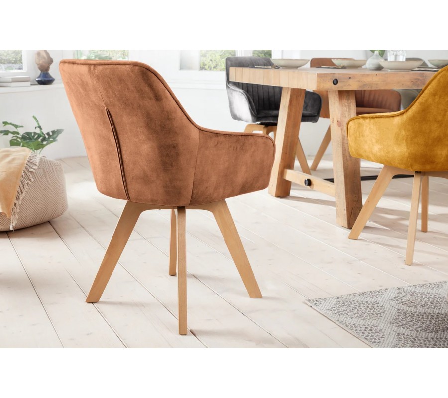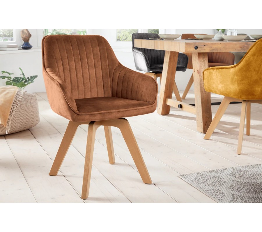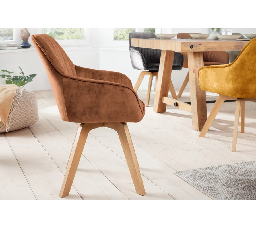 Moderní designová otočná jídelní židle Caballet s opěrkami na ruce s hnědým sametovým potahem a bukovýma nohama 62 cm