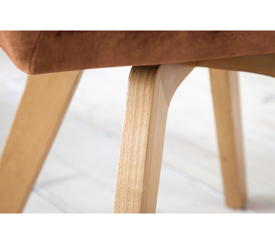 Pěnová výplň je překryta potahem z mikrovlákna, které zaručuje nenáročnou údržbu a výbornou odolnost vůči vlivům každodenního používání. Sametový finiš je příjemný na dotek a dodává teplé hnědé barvě elegantní jemný lesk.