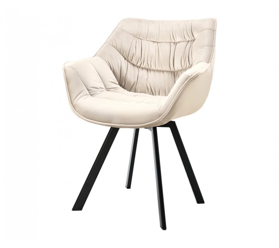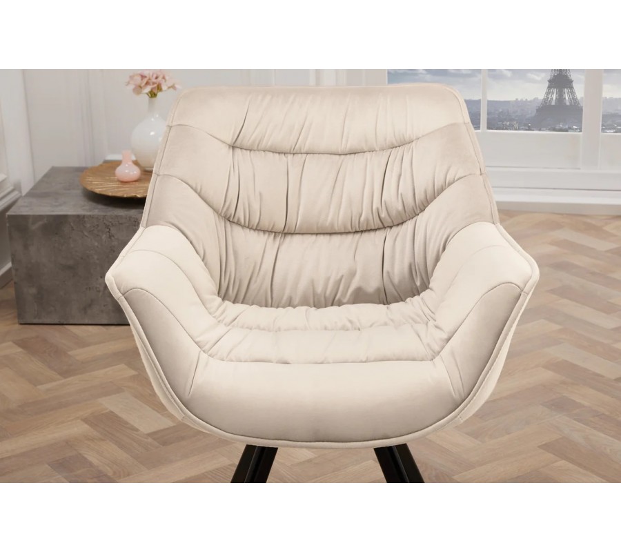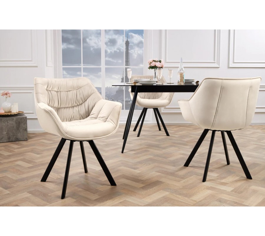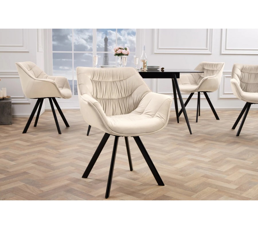 Designová sametová otočná jídelní židle Monzana v šampaňské béžové barvě s černými kovovými nožičkami 80 cm