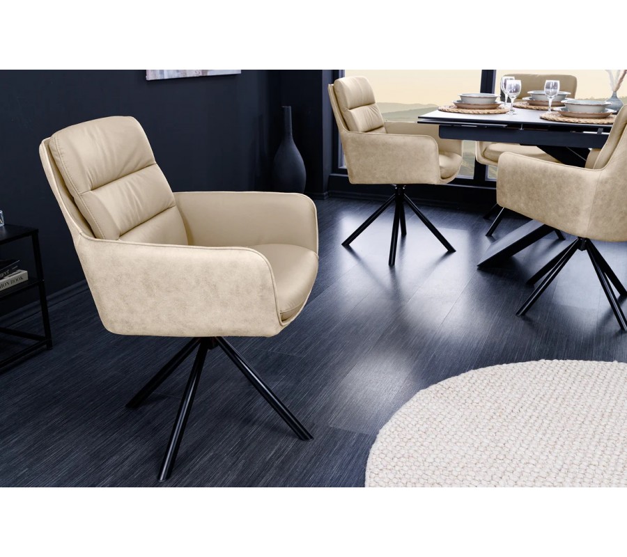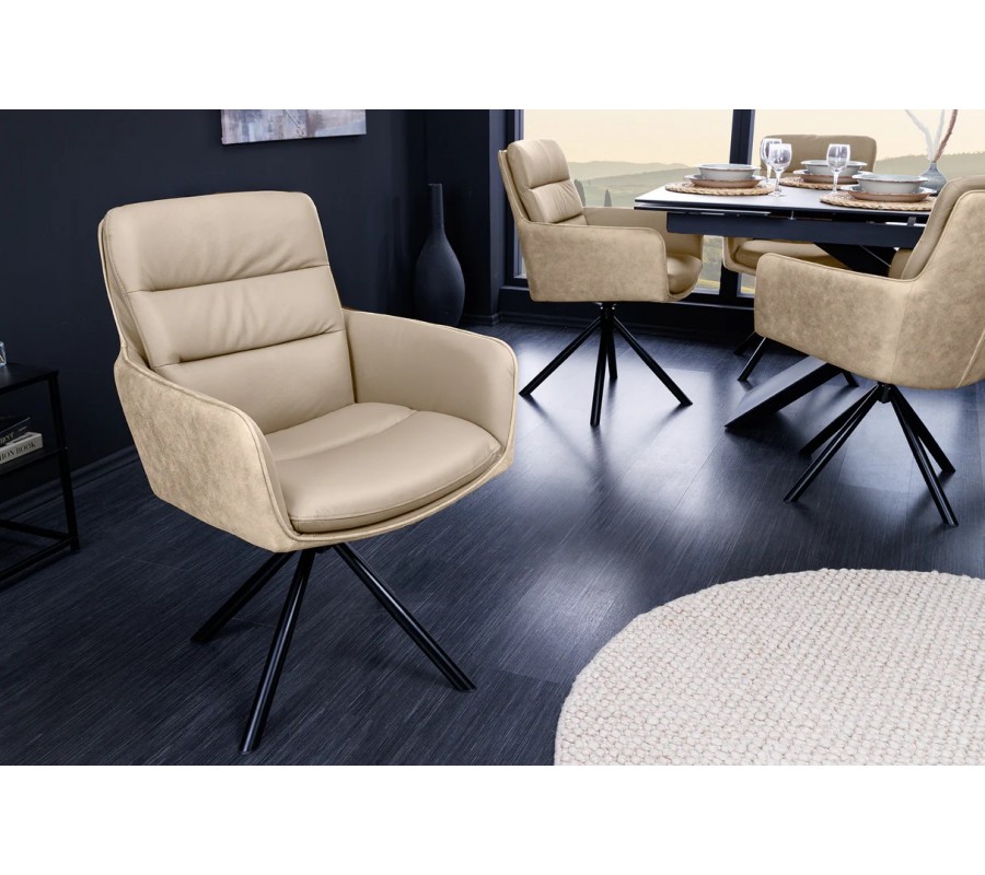 Designová kožená otočná béžová jídelní židle Dover s černými kovovými nožičkami 88 cm