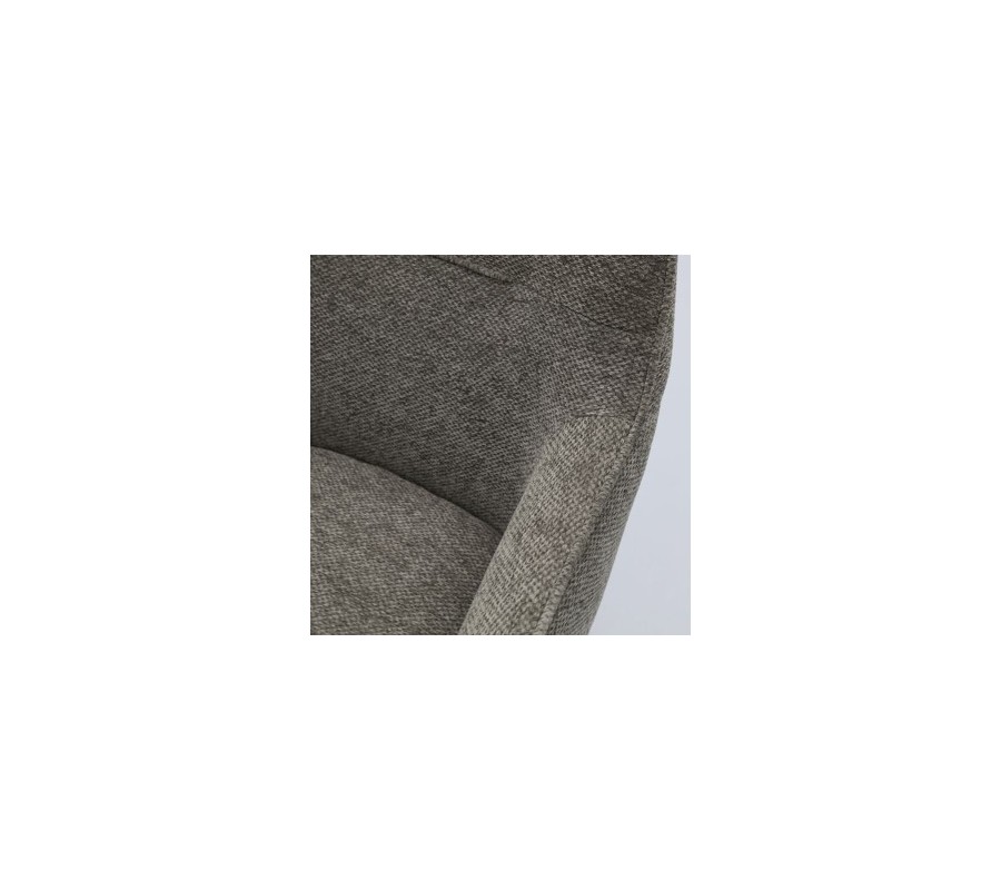 Jídelní židle disponuje otočným sedadlem doplněným o sedací polštář, který zvyšuje pohodlí při sezení. Páteřová opěrka je jemně nakloněna dozadu a v její horní části se nachází jednoduchý lineární dekorativní detail v minimalistickém stylu. Po bocích plynule přechází v jednom celku do nižších opěrek na ruce.