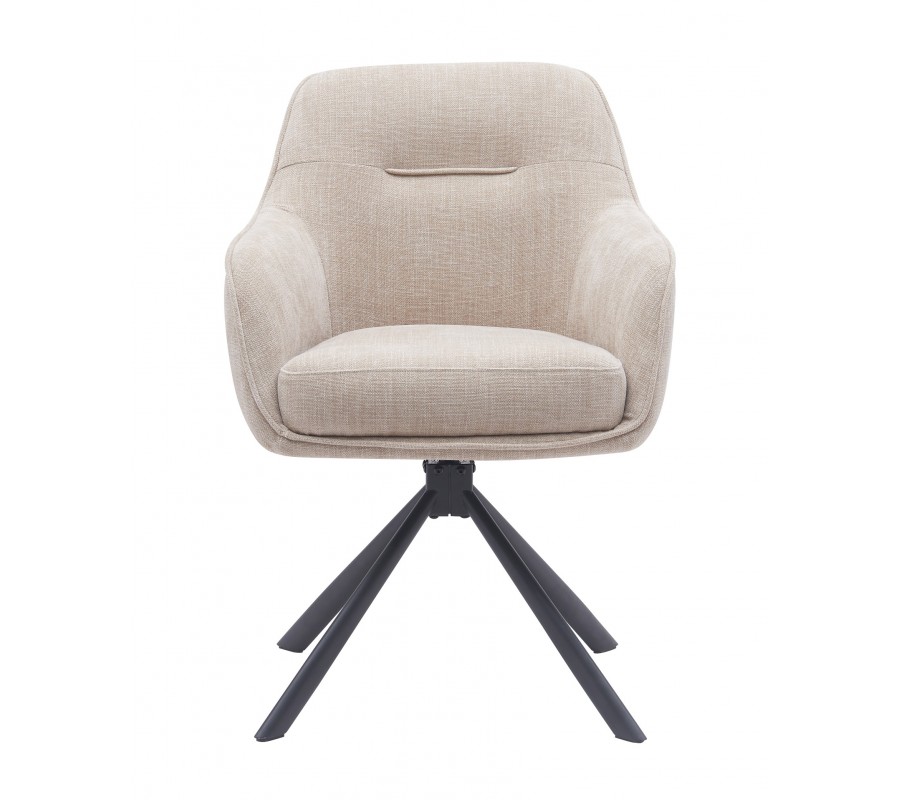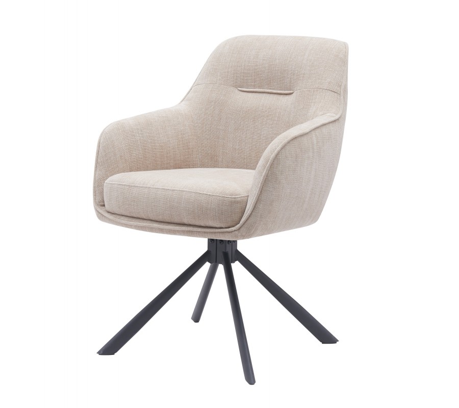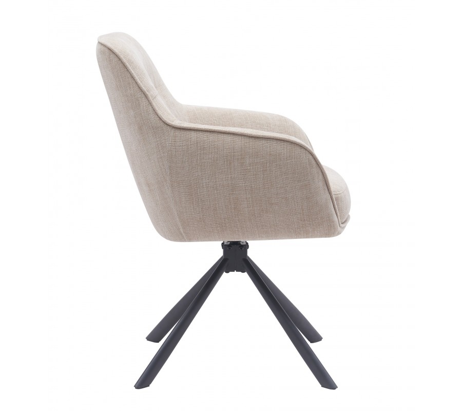Moderní otočná jídelní židle Egon se světlým béžovým potahem s designem lnu s černýma kovovými nohami 59 cm