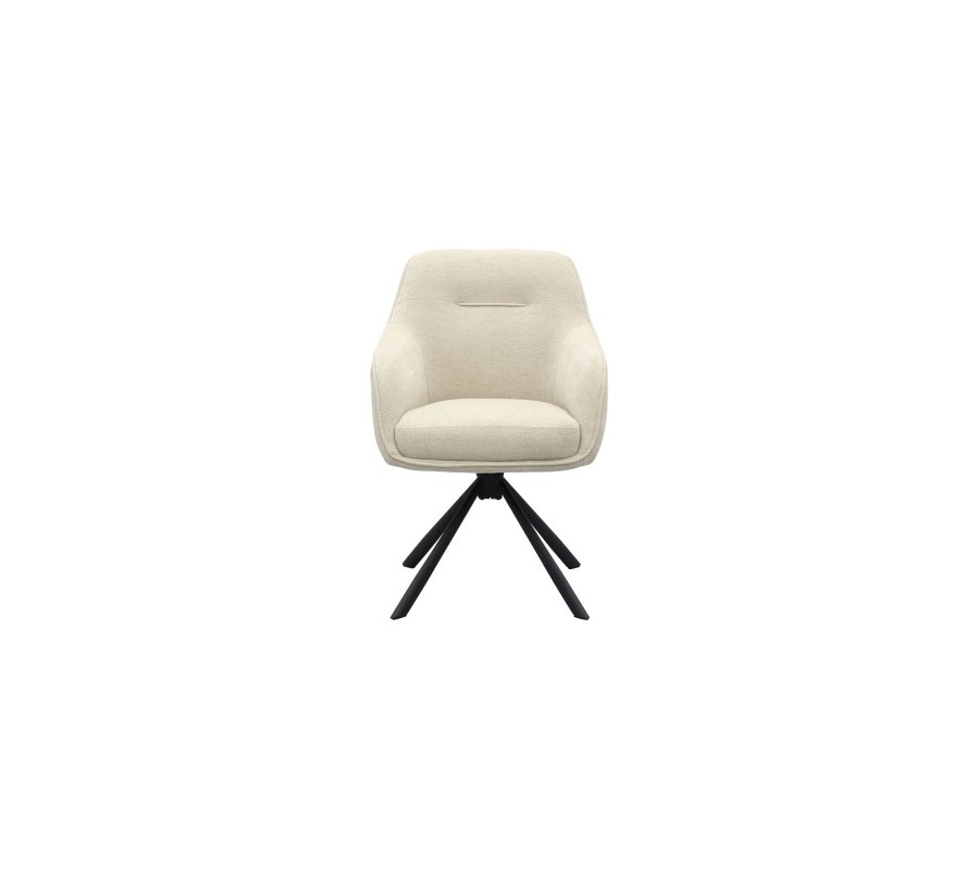 Designová moderní jídelní židle Egon s otočným sedátkem s bílým pískovým čalouněním a černou kovovou podstavou 59 cm
