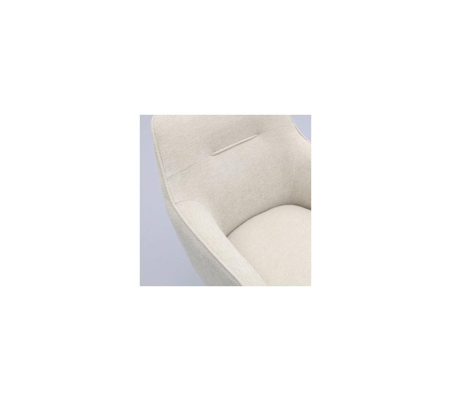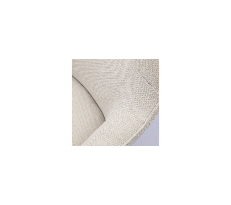 Měkká pěnová výplň zvyšuje komfort a zároveň dodává židli zaoblenou siluetu. Povrch je pokryt potahem z mikrovlákna, který je pevný, odolný a příjemný na dotek. Textilie s hladkým tkaním v pískově bílém odstínu vizuálně odlehčí sedací část a ženylkové vlákno s jemným leskem vytváří sofistikovaný akcent.