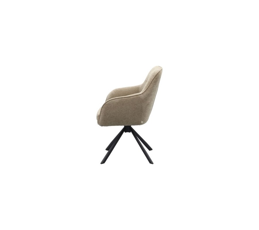 Moderní skandinávská otočná jídelní židle Egon s opěrkami na ruce se světlým hnědým potahem a černýma nohama 59 cm