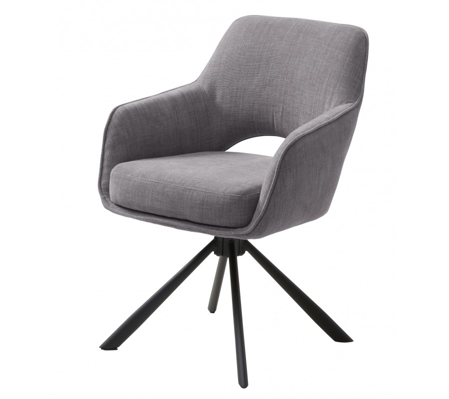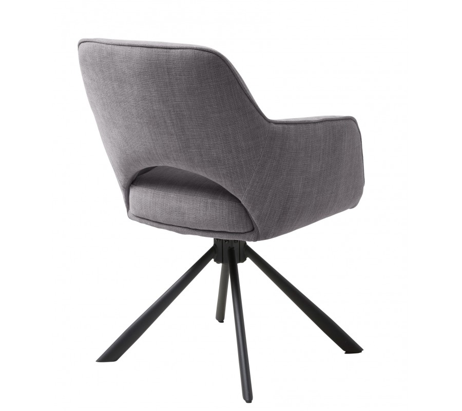 Industriální otočná jídelní židle Mille s opěrkami na ruce s šedým žinylkovým potahem a černou podstavou 86 cm