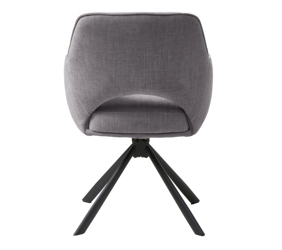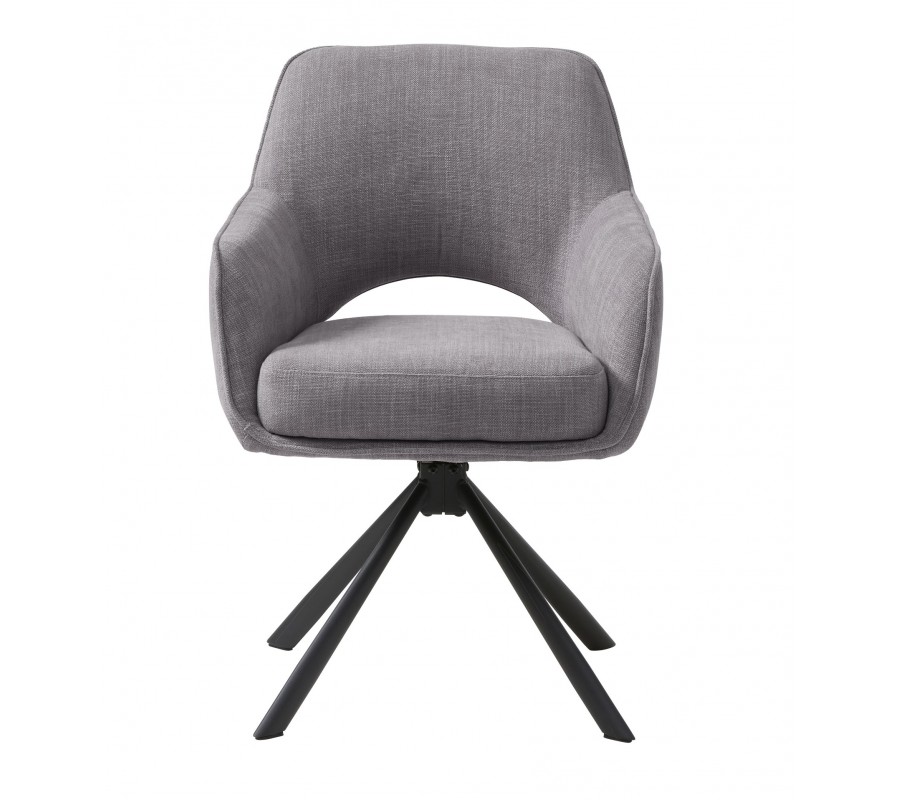 Industriální otočná jídelní židle Mille s opěrkami na ruce s šedým žinylkovým potahem a černou podstavou 86 cm