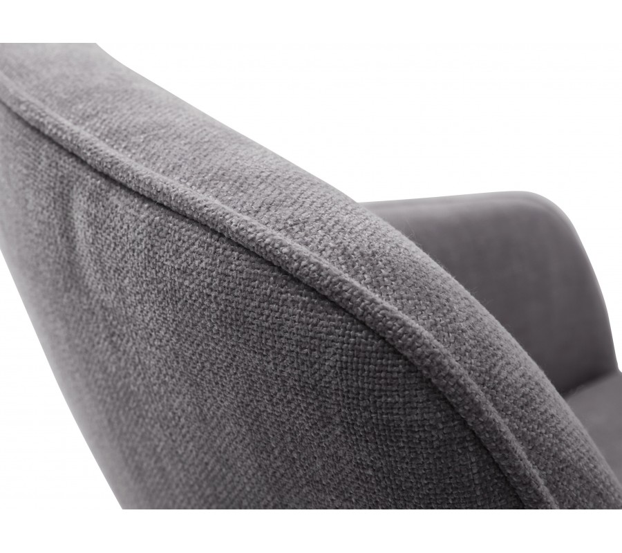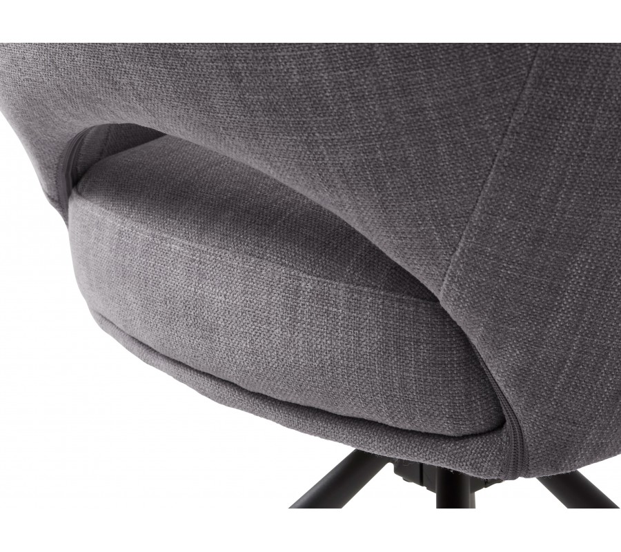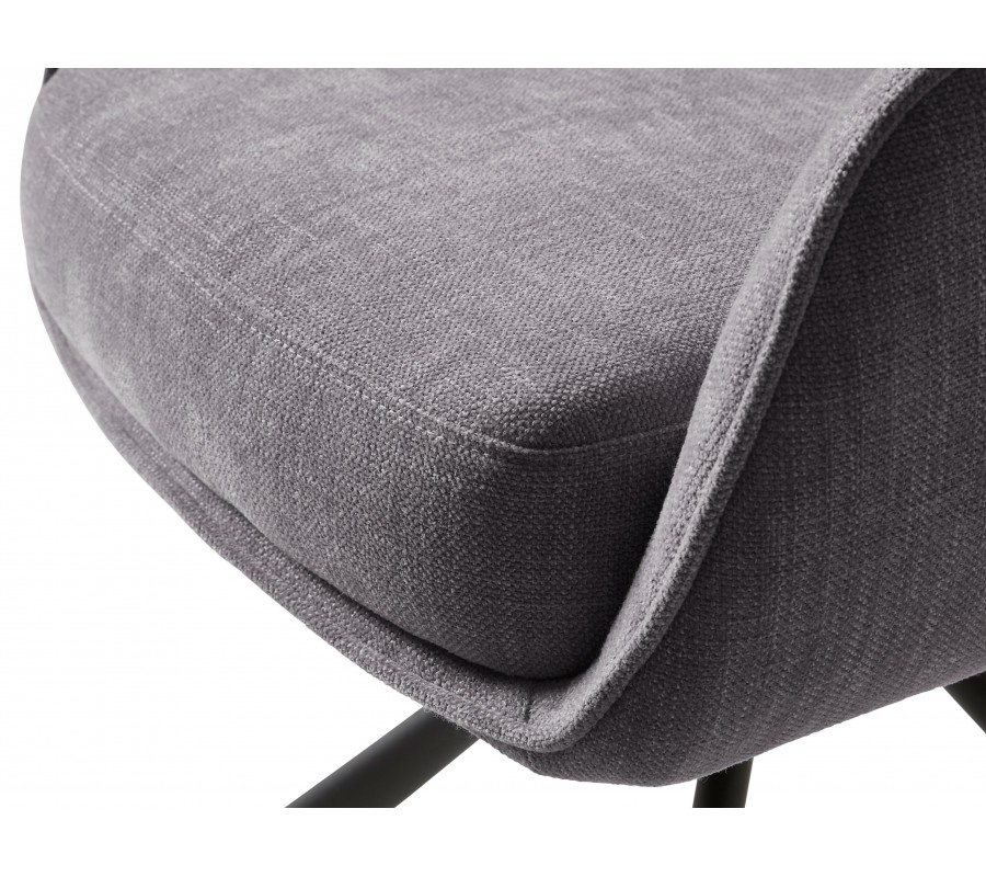 Potah je vyroben z mikrovlákna, které je mimořádně pevné. Výborně odolá vlivům každodenního používání a zachová si svůj vzhled. Textilie má jemnou strukturu s na dotek příjemným ženilkovým finišem. Zvýrazňuje ji elegantní provedení ve světle šedé barvě s melírovaným efektem. Černá podstava z kovu barevně komplimentuje potah a zároveň k němu vytváří strukturální kontrast.