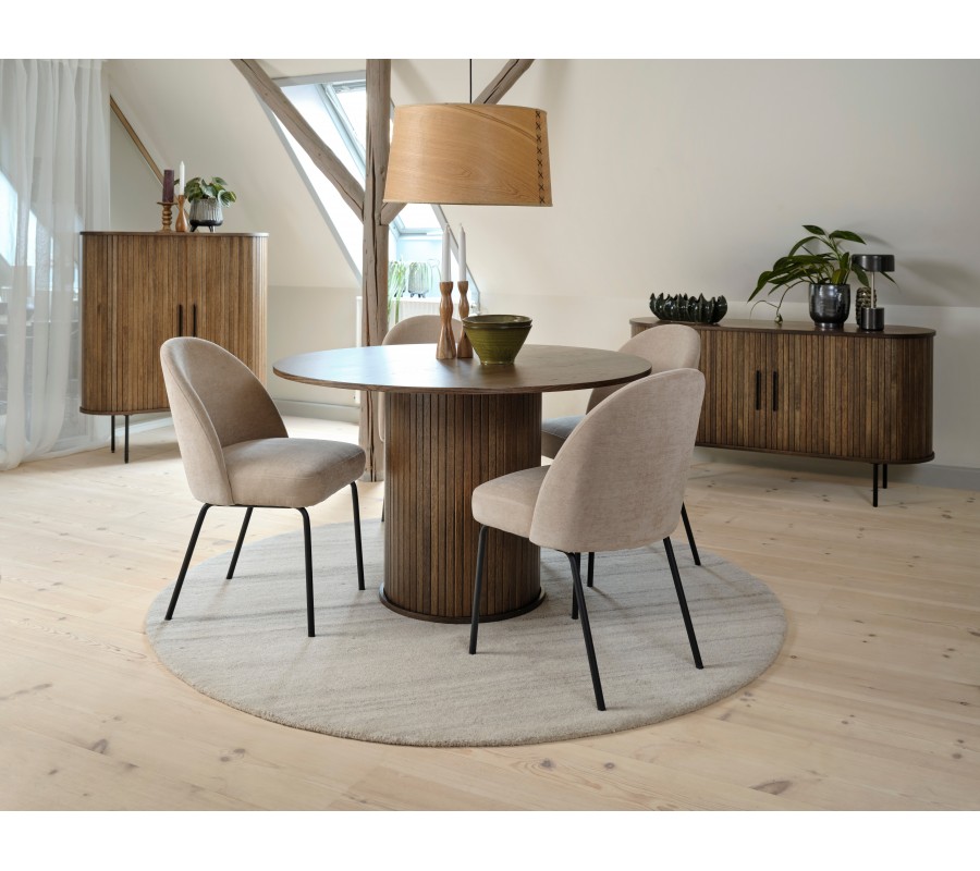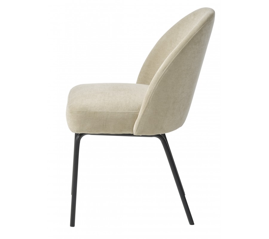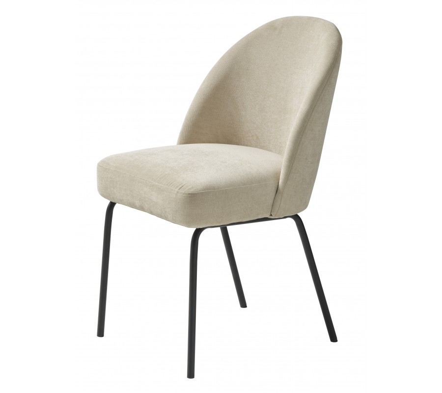 Jídelní židle Zila propojuje moderní a skandinávský design s industriálními detaily. Ženilkový potah v pískově béžovém odstínu přinese do prostoru pocit tepla a snadno se kombinuje s dalším nábytkem.
