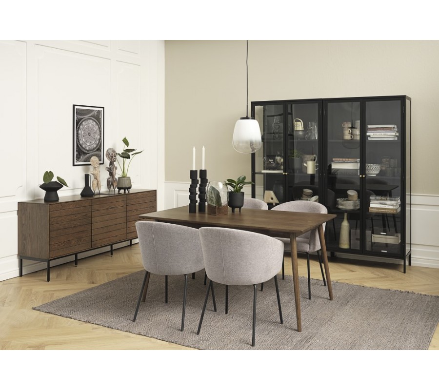 Židle Idun se výborně hodí k jídelním stolům s černou kovovou podstavou v industriálním stylu. Její elegantní šedý odstín vynikne iv moderních jídelnách, zejména v kombinaci se sklem, chromem nebo mramorem. Stejně dobře ladí is výraznějšími barvami, pastelovými tóny či doplňky ve zlaté nebo stříbrné barvě.