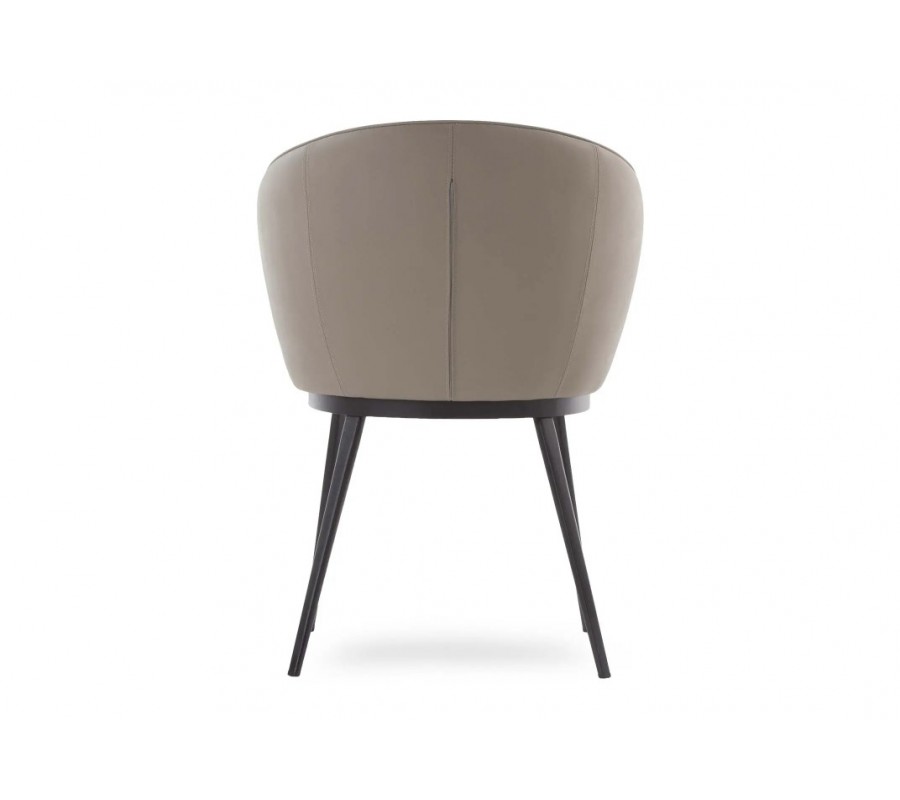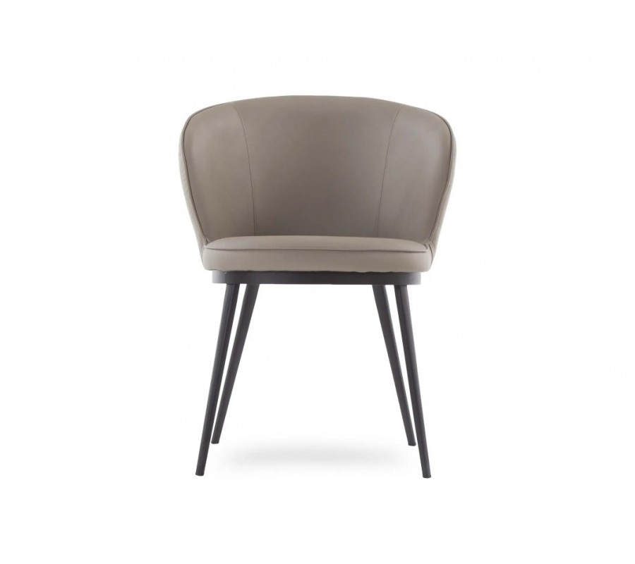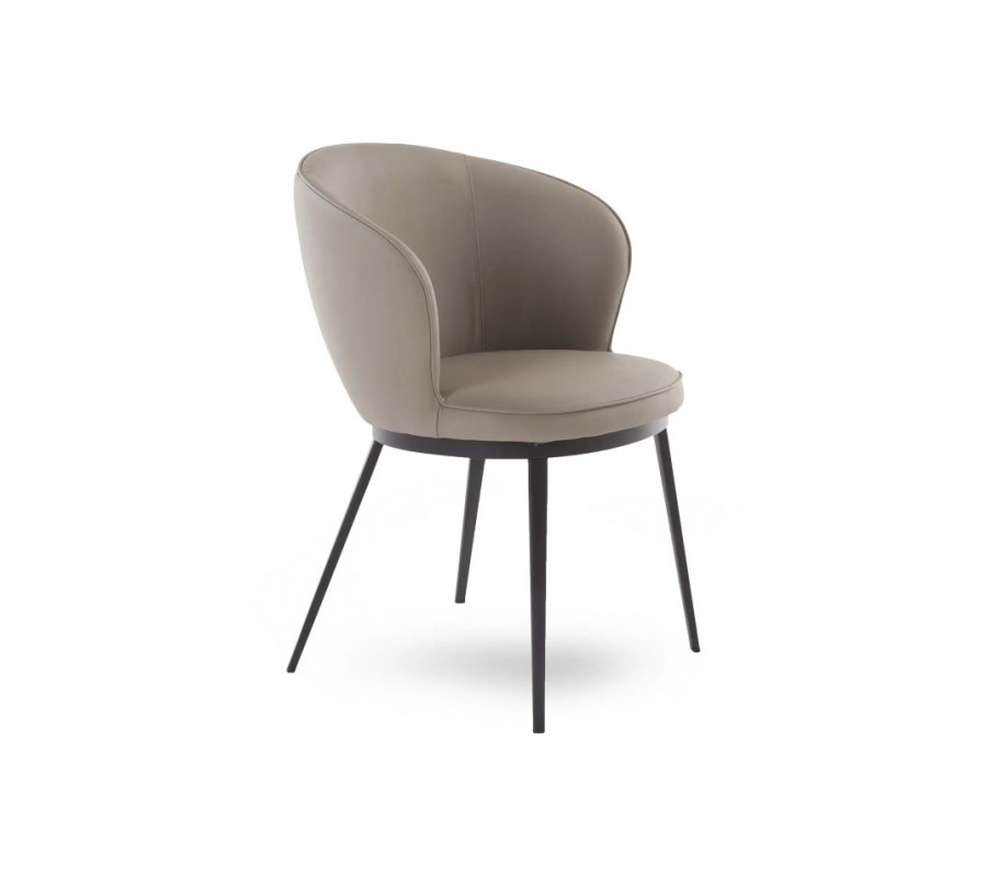 Moderní kožená kulatá jídelní židle Gamla s hnědosivým potahem v odstínu taupe a černýma nohama 61 cm