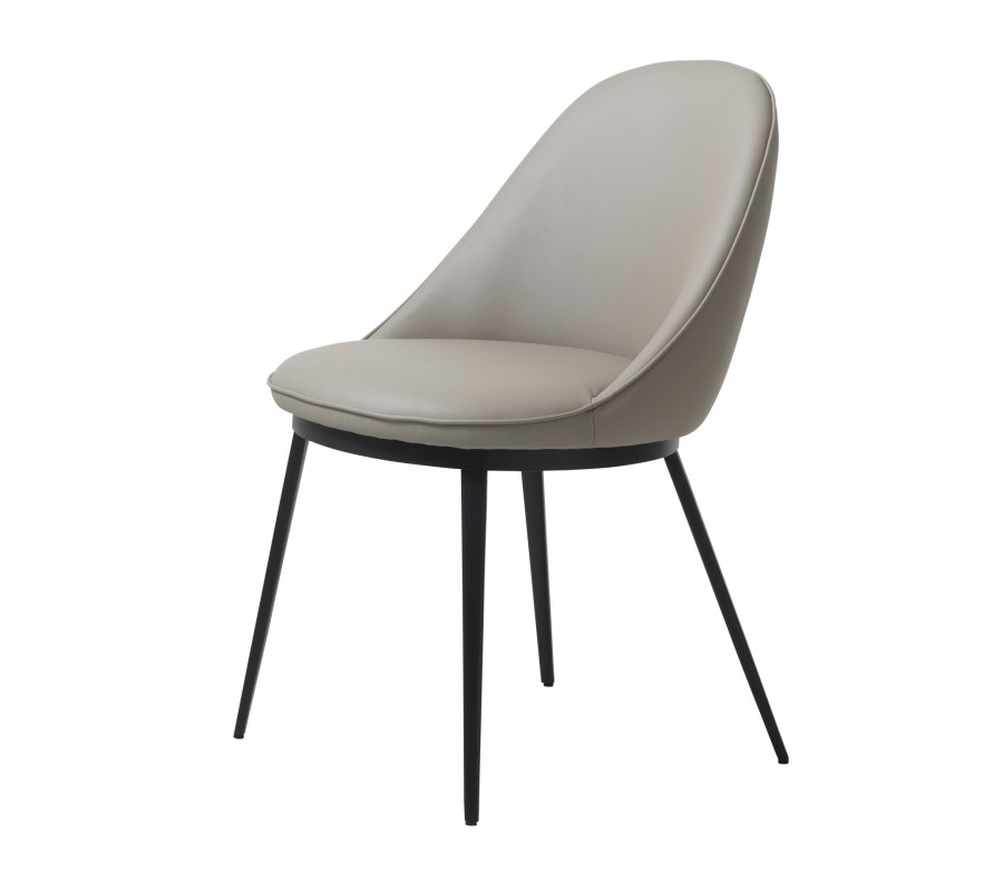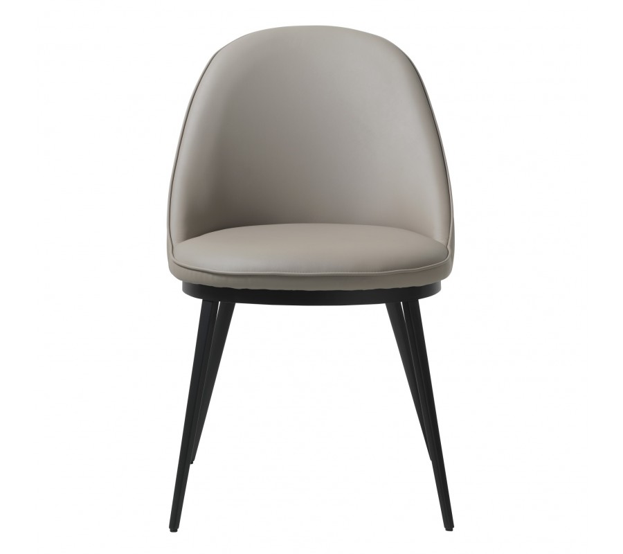 Moderní industriální jídelní židle Gamla s koženým potahem v hnědošedém odstínu taupe s černýma kovovými nohama 52 cm