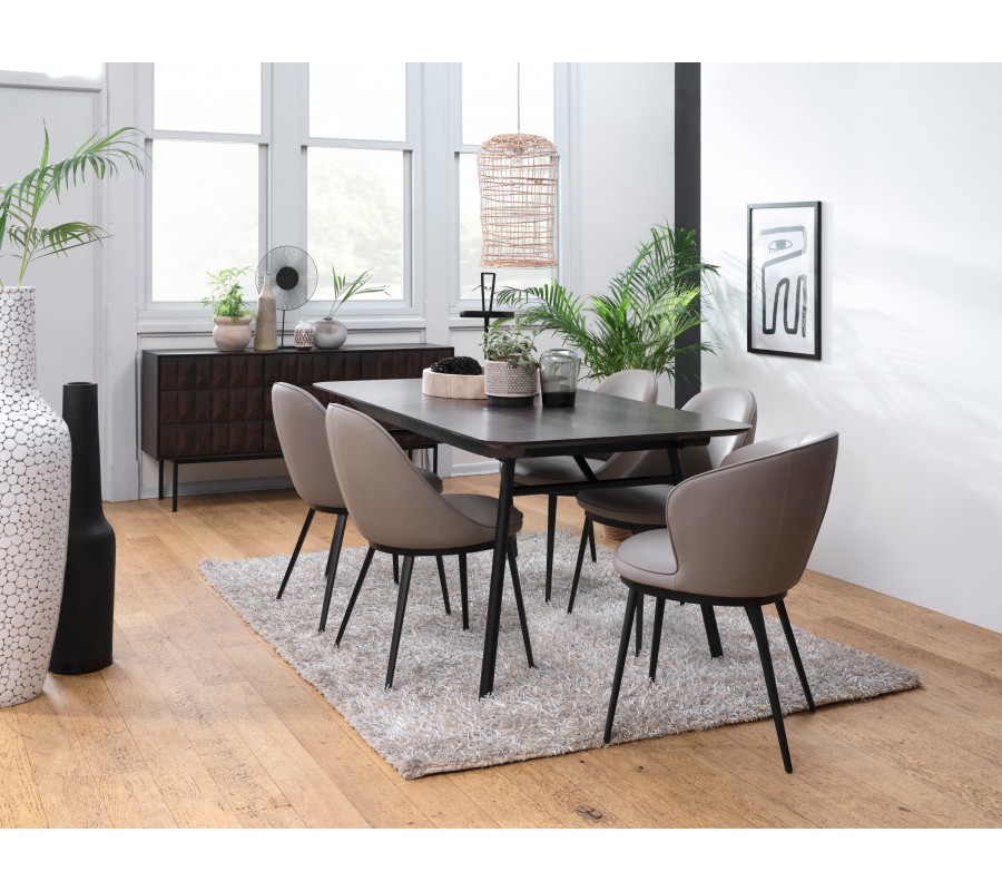 Jídelní židle Gamla vynikne u stolu s tmavou kovovou podstavou v industriálním stylu. Hodí se také do moderních interiérů, kde ji můžete doplnit masivním dřevem či kamenem pro elegantní přírodní vizuál. Taupe odstín se výborně kombinuje také s výraznějšími barvami, jako například hořčicová, olivová či cihlově červená.