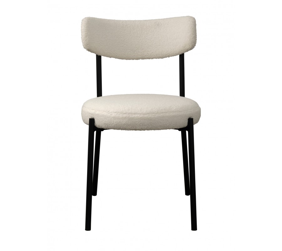 Moderní buklé jídelní židle Edna s bílým čalouněným sedátkem a opěrkou s černou kovovou konstrukcí 47 cm