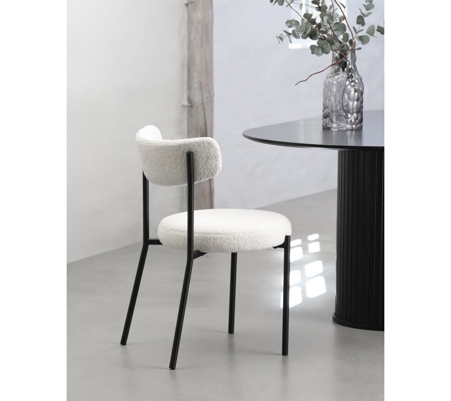 Jídelní židle Edna vás okouzlí svým moderním minimalistickým vizuálem. Buklé potah přináší do kompozice eleganci a provedení v černé a bílé barvě se snadno kombinuje s dalším nábytkem.