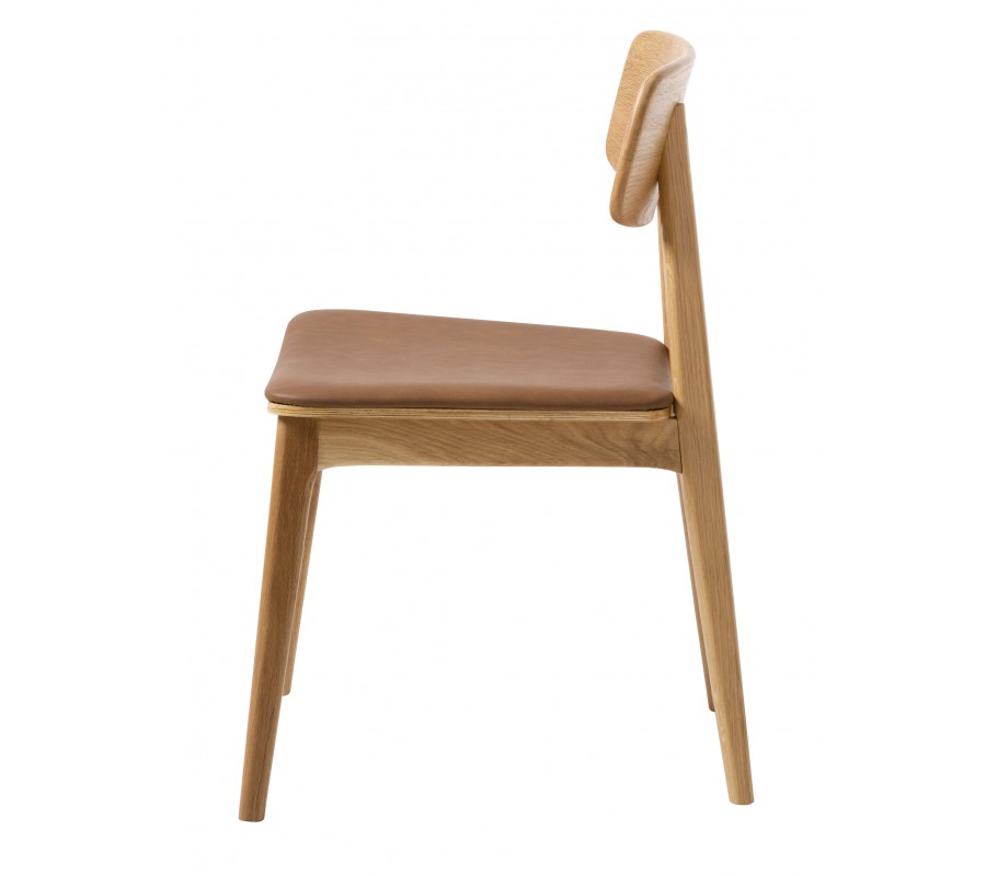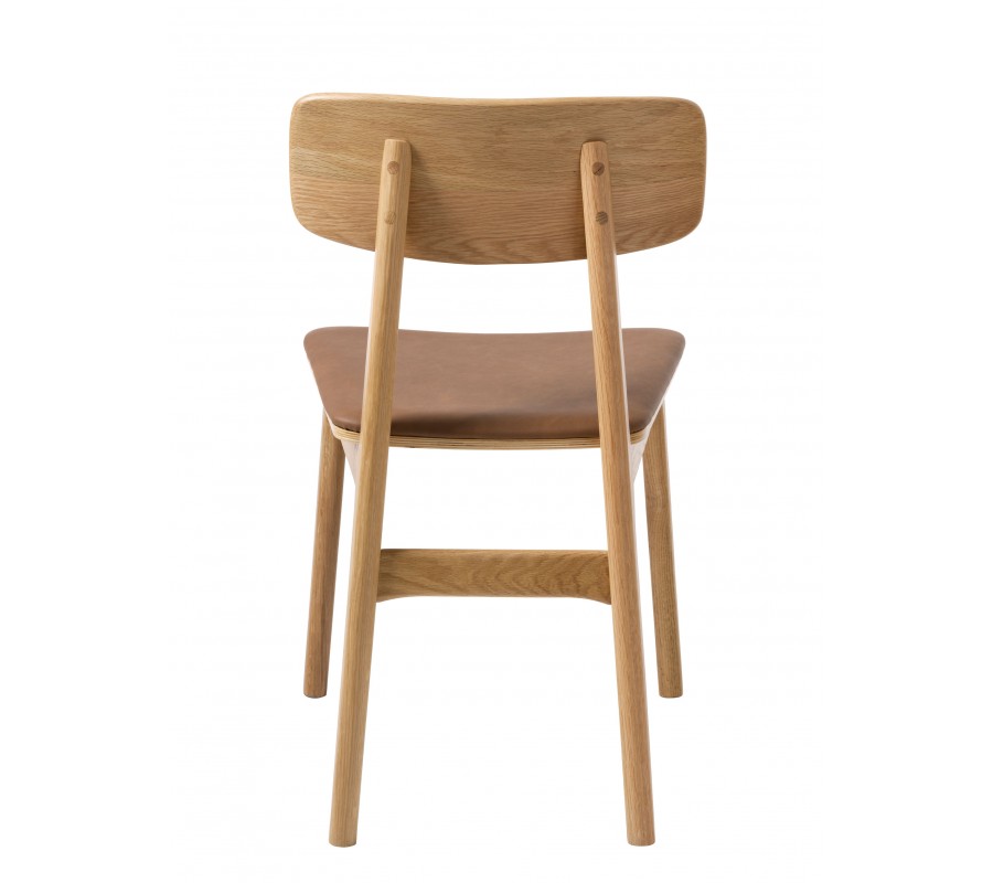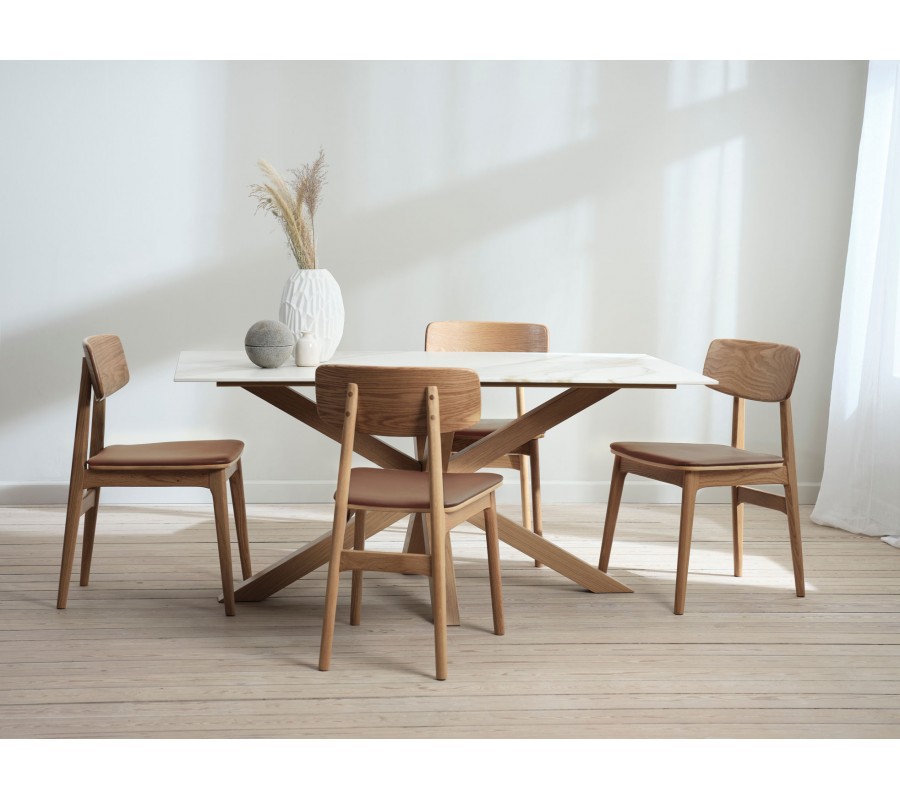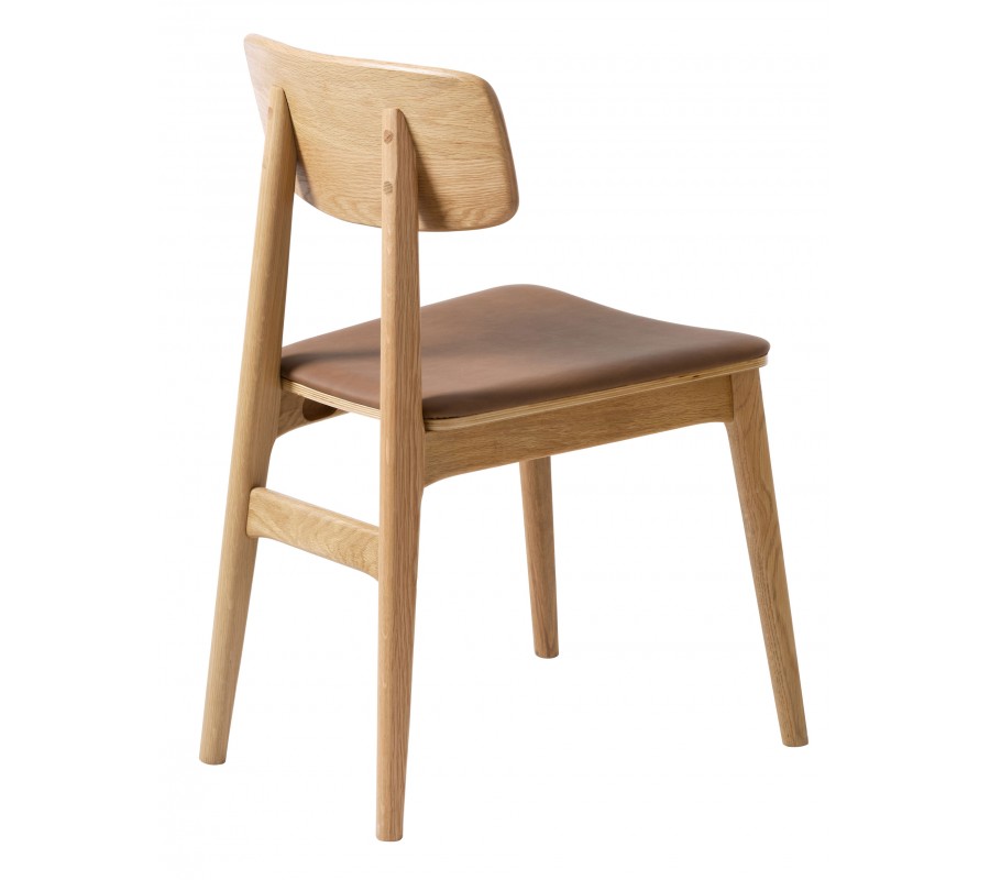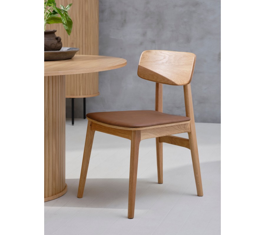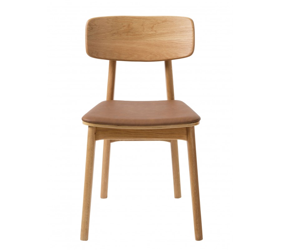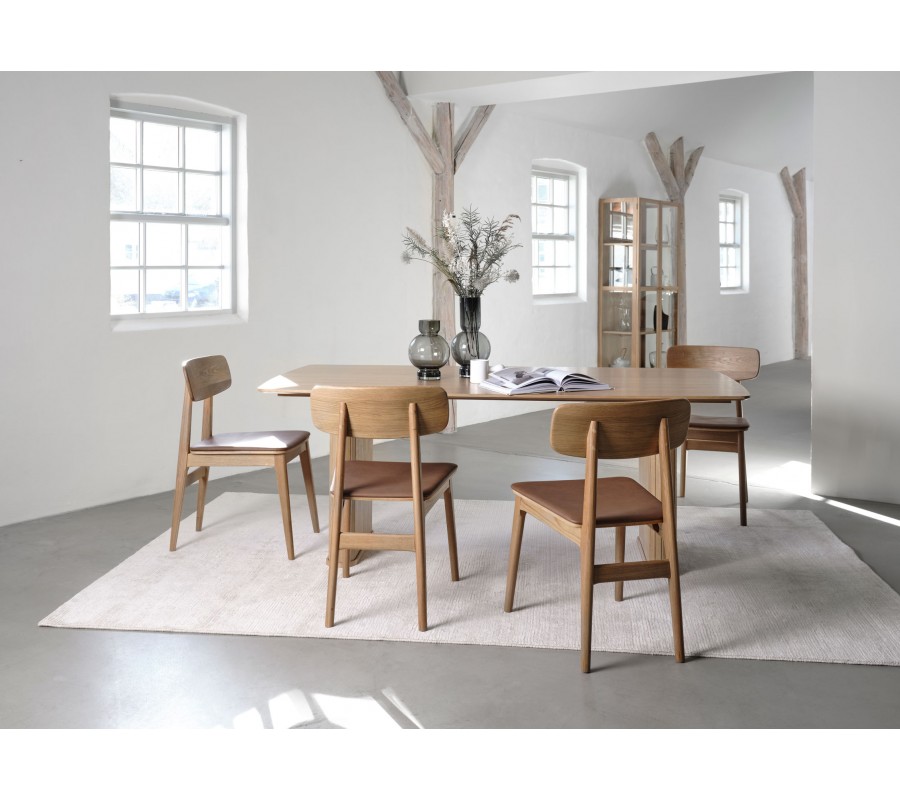 Jídelní židle Vimo vyniká nadčasovým designem, který propojuje moderní design se skandinávskou estetikou. Kombinace světlého dubového dřeva a hnědého koženého sedáku působí elegantně a zároveň přinese do prostoru pocit přírodního tepla.