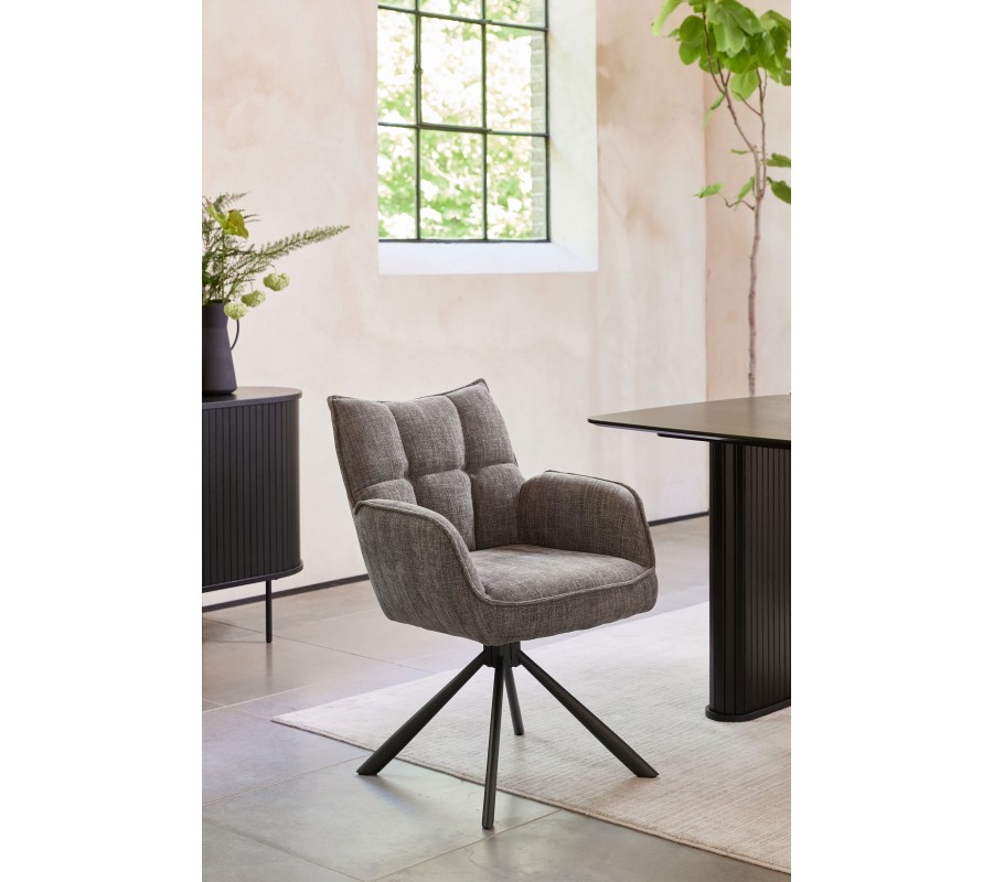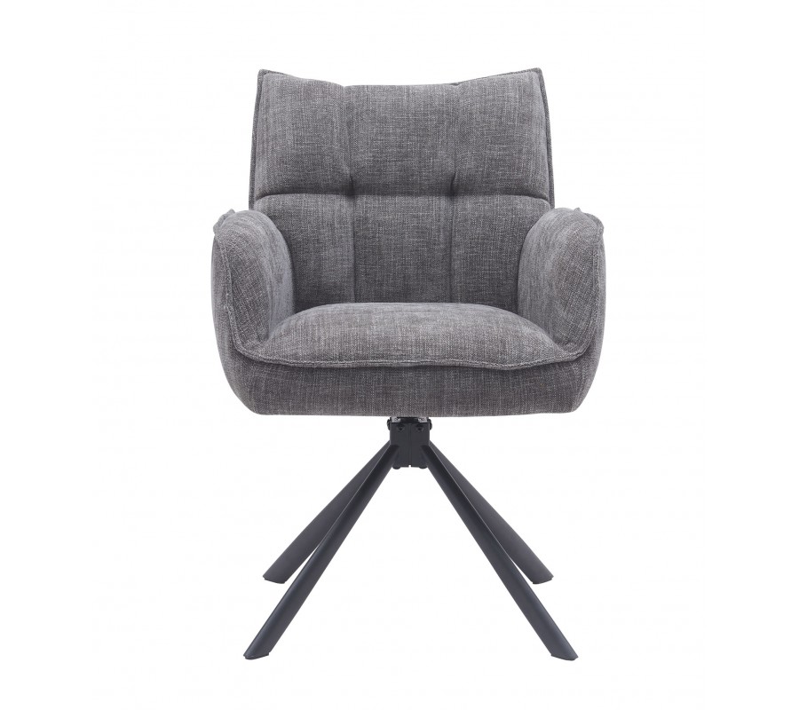 Industriální otočná šedá jídelní židle Laerke s prošívaným žinylkovým čalouněním a černou kovovou podstavou 59 cm