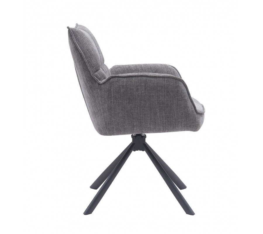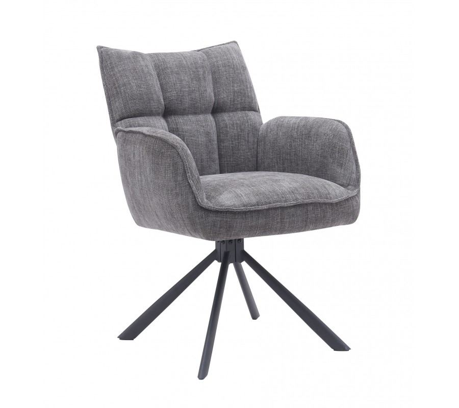 Industriální otočná šedá jídelní židle Laerke s prošívaným žinylkovým čalouněním a černou kovovou podstavou 59 cm