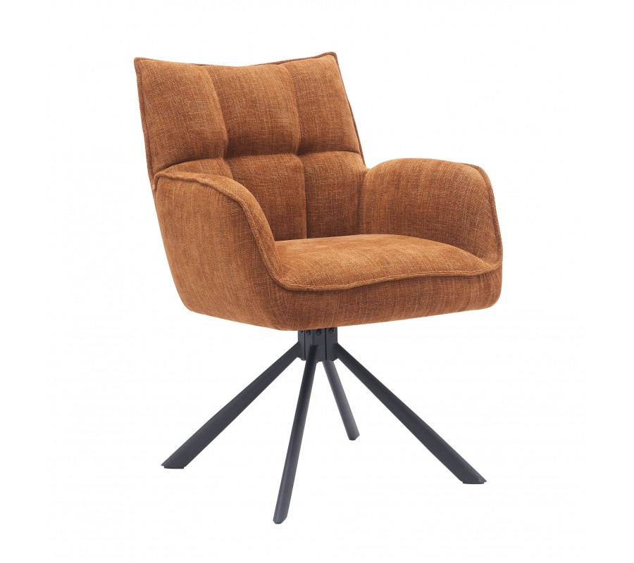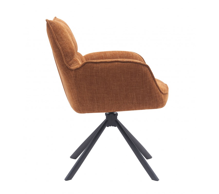 Skandinávská otočná jídelní židle Laerke s rezavě oranžovým žinylkovým potahem a černou kovovou podstavou 59 cm