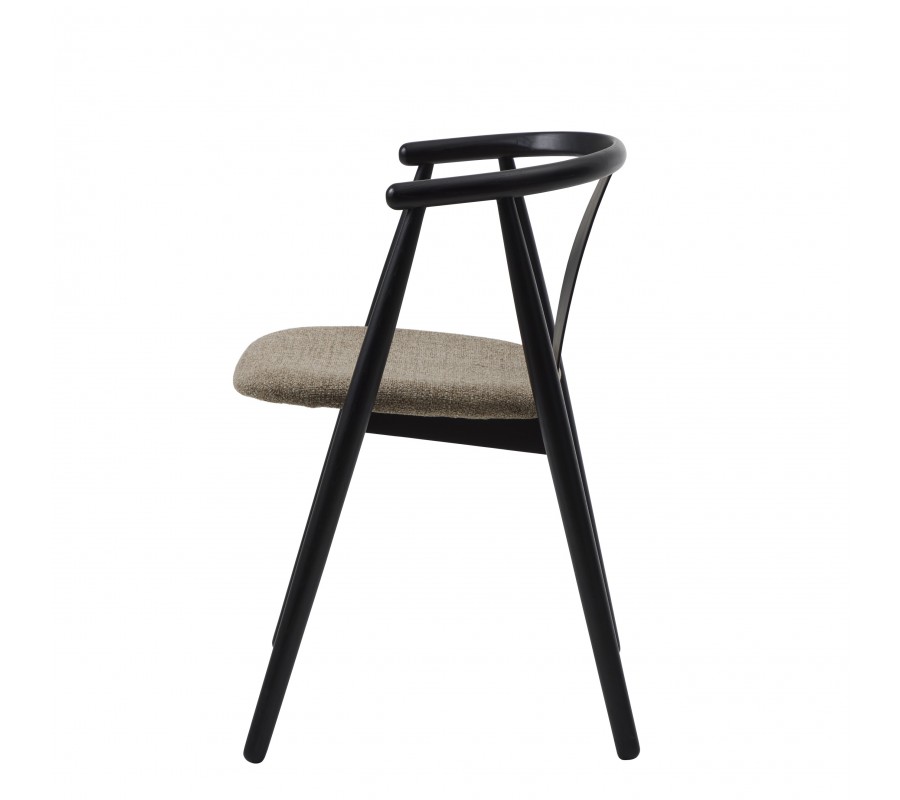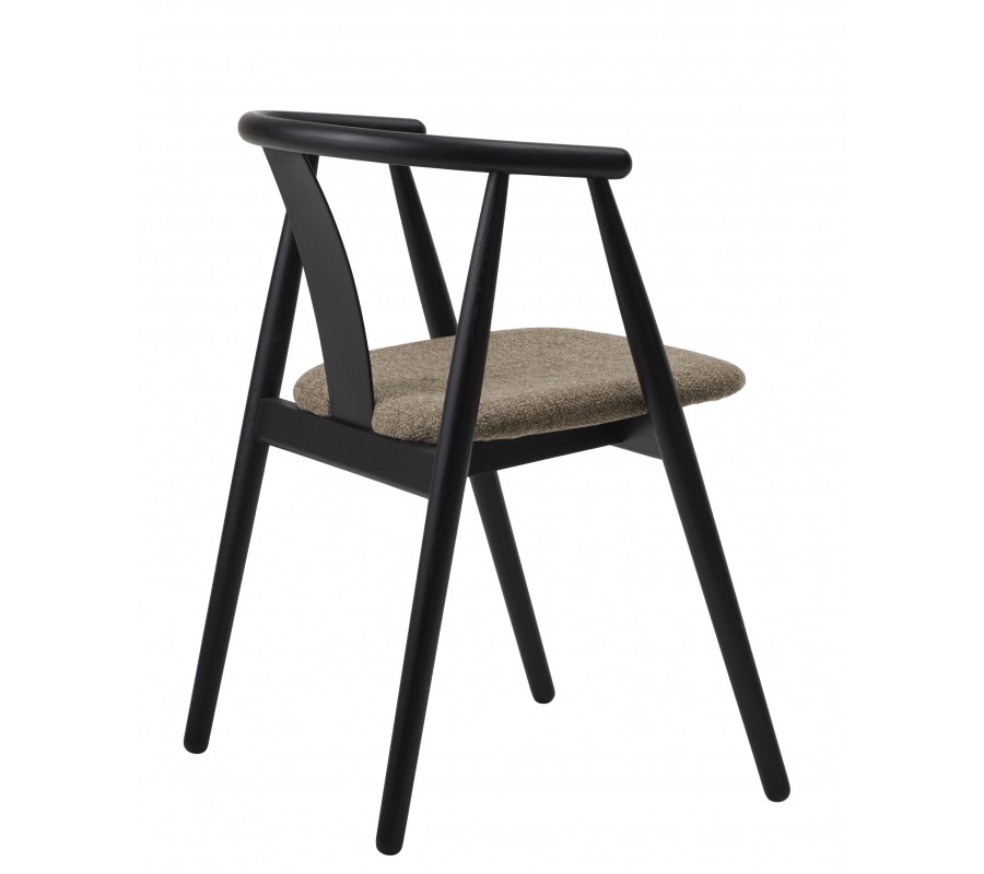 Luxusní moderní jídelní židle Cordel s černým masivním dubovým rámem a čalouněným sedadlem s hnědošedé barvě 77 cm