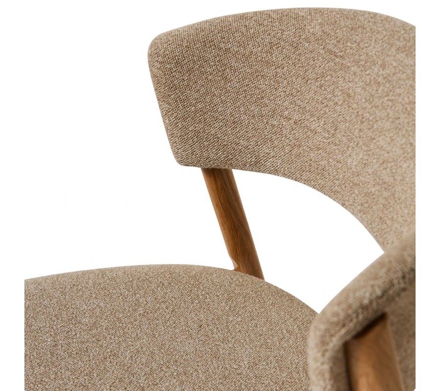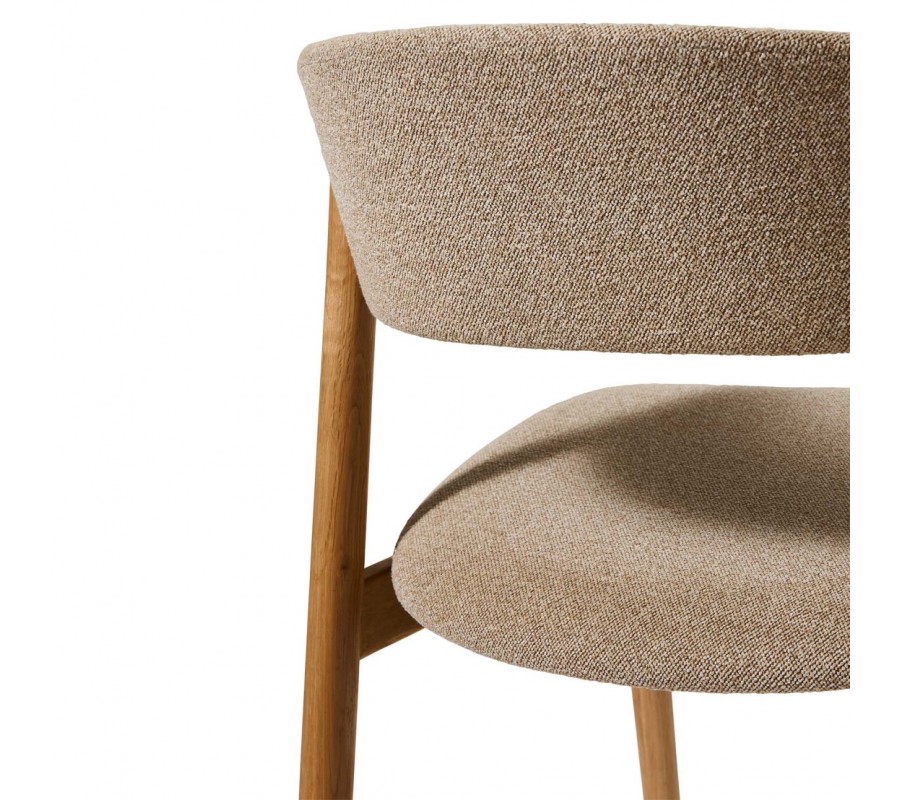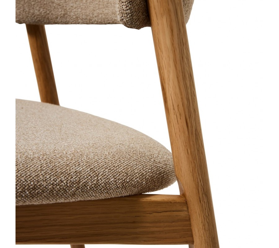 Konstrukce je vyrobena z dubového dřeva. Povrchová úprava zachovává přírodní světlou hnědou barvu nechává vyniknout přirozenou kresbu letokruhů, čímž podtrhuje skandinávský styl. Sedadlo i opěrka jsou čalouněny béžovým potahem z mikrovlákna s melírovaný efektem, který je odolný a vhodný i pro každodenní intenzivní používání. Jemný ženilkový finiš je měkký na dotek a dodává židli útulný charakter.
