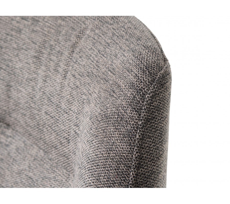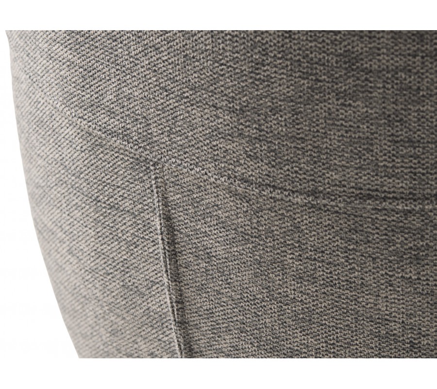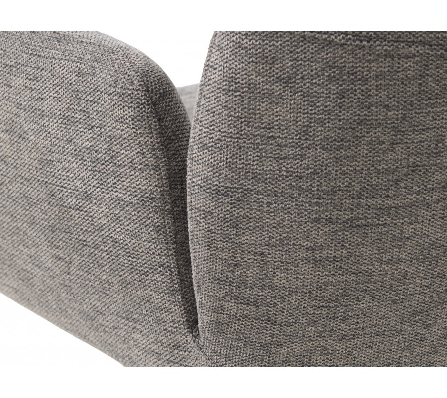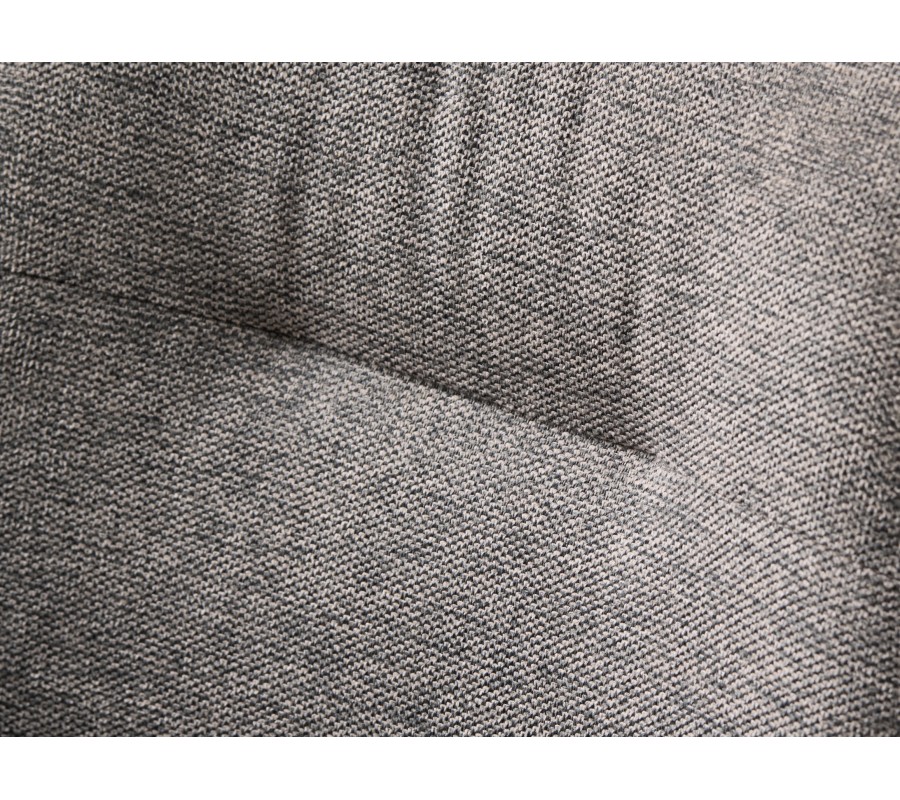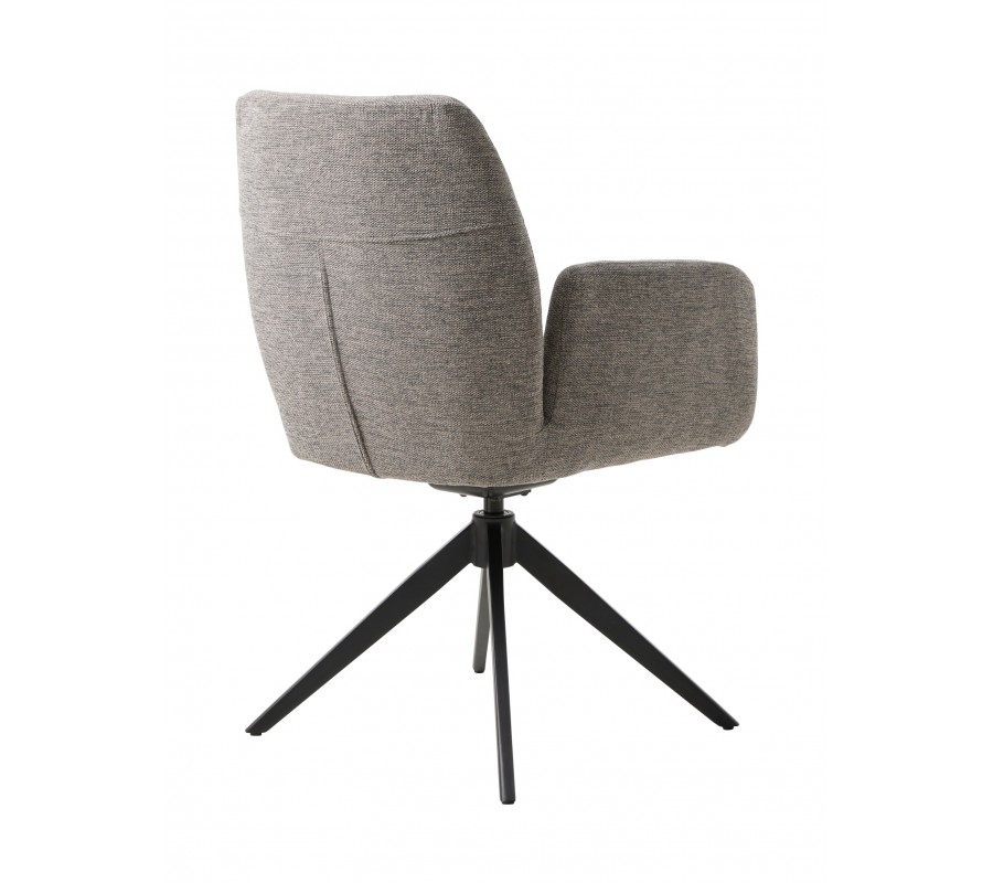 Sedadlo doplňuje hranatá opěrka zad a samostatně stojící boční područky obdélníkového tvaru, díky čemuž působí židle opticky snadno a vzdušně. Výplň z kvalitní pěny zaobluje rovné linie a spolu s mírně nakloněnou opěrkou zajišťuje pohodlí i při delším stolování. Potah z odolného mikrovlákna je přizpůsoben každodennímu intenzivnímu používání a vyniká dlouhou životností. Hladké tkaní s melírovaným efektem dodává tmavšímu šedému provedení elegantní a sofistikovaný vzhled.