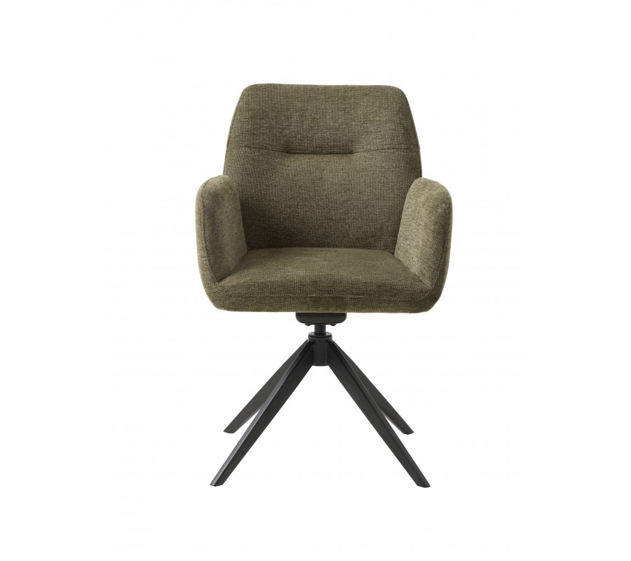 Moderní olivová zelená jídelní židle Jens s otočným sedátkem s melírovaným čalouněním a černou kovovou podstavou 88 cm