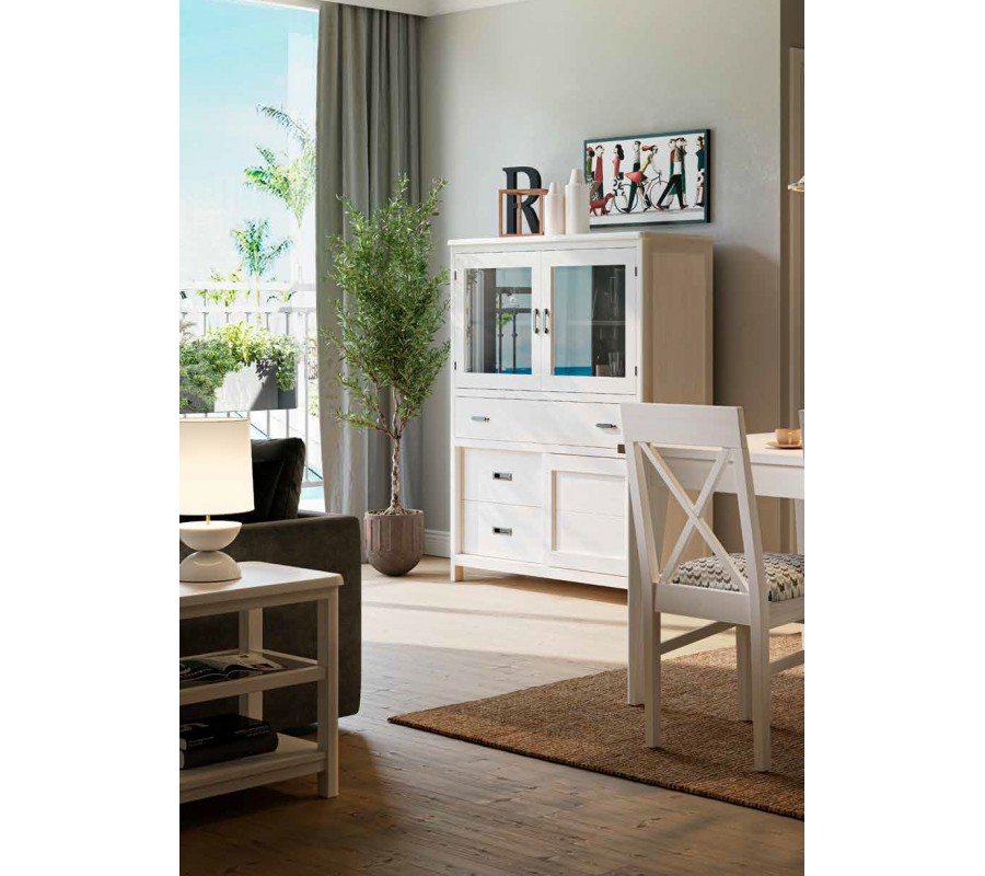 Luxusní příborník s vitrínou Cerdena představuje nadčasový kousek z naší kolekce inspirované romantickým italským ostrovem Sardinie. Je vyroben z kvalitního masivního dřeva od dodavatele s certifikátem obnovy lesního porostu, díky čemuž je výbornou udržitelnou a ekologickou volbou. Ruční výroba zajišťuje preciznost, kvalitu a originalitu každého kousku a inspirace moderními trendy je zárukou nadčasového vzhledu. Příborník Cerdena disponuje praktickými poličkami se skleněnými dvířky, šuplíky a posuvnými dvířky ve spodní části. Dominantním prvkem tvořícím jedinečný design jsou minimalistické tvary a zjemňující zaoblené hrany. Na výběr nabízíme řadu barevných provedení, které si můžete prohlédnout v přiloženém vzorníku. Vybrat si lze také barevný odstín kovových rukojetí, které svým vintage provedením doplňují celkový jedinečný vzhled příborníku. Příborník Cerdena ideální vynikne v moderně laděných obývácích a jídelnách.