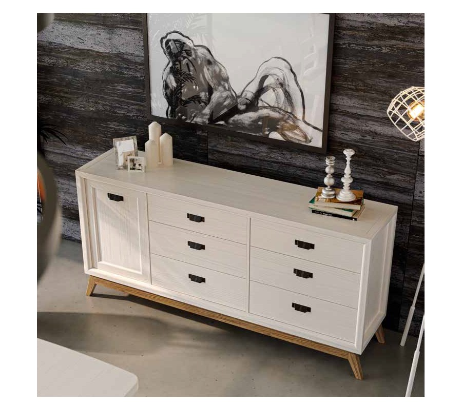 Luxusní moderní příborník Rodas na šikmých nožičkách se šesti šuplíky a jedněmi dvířky 187 cm