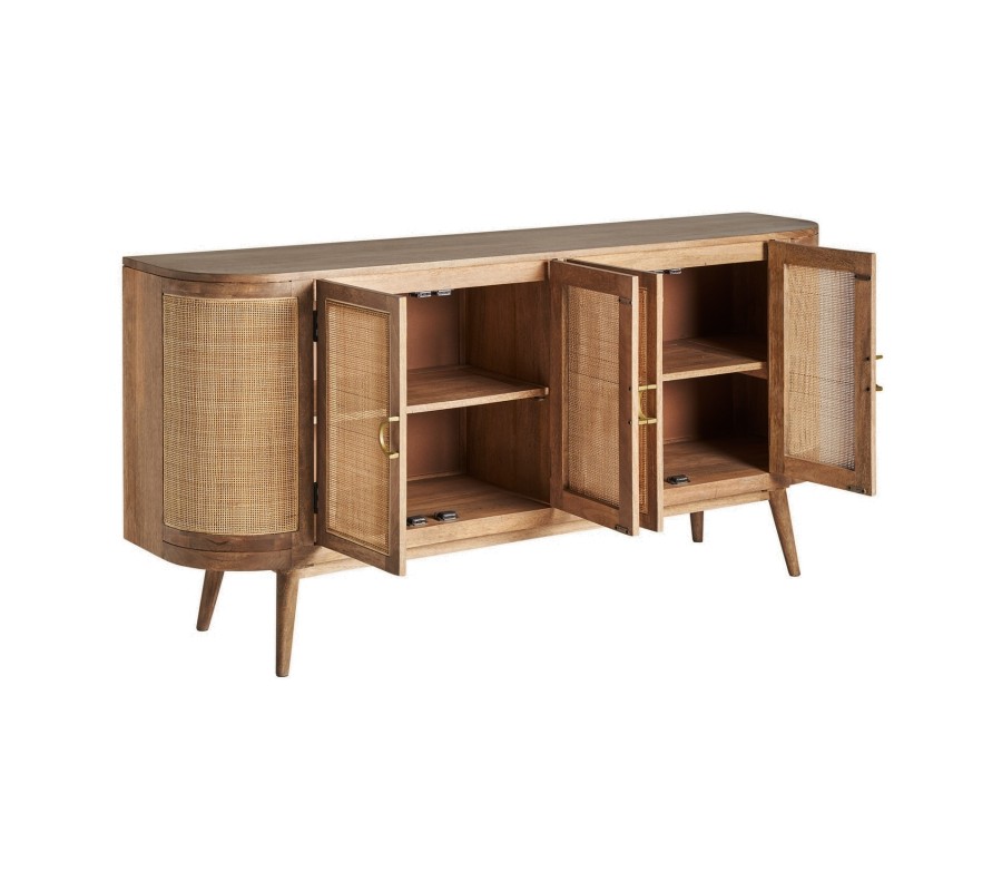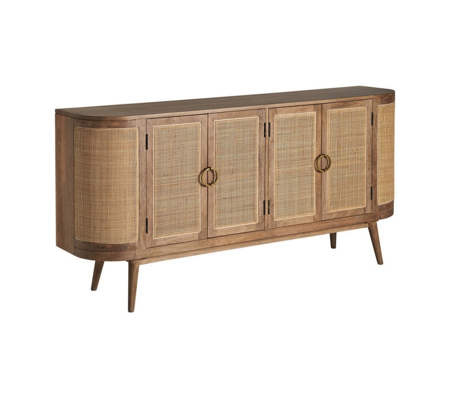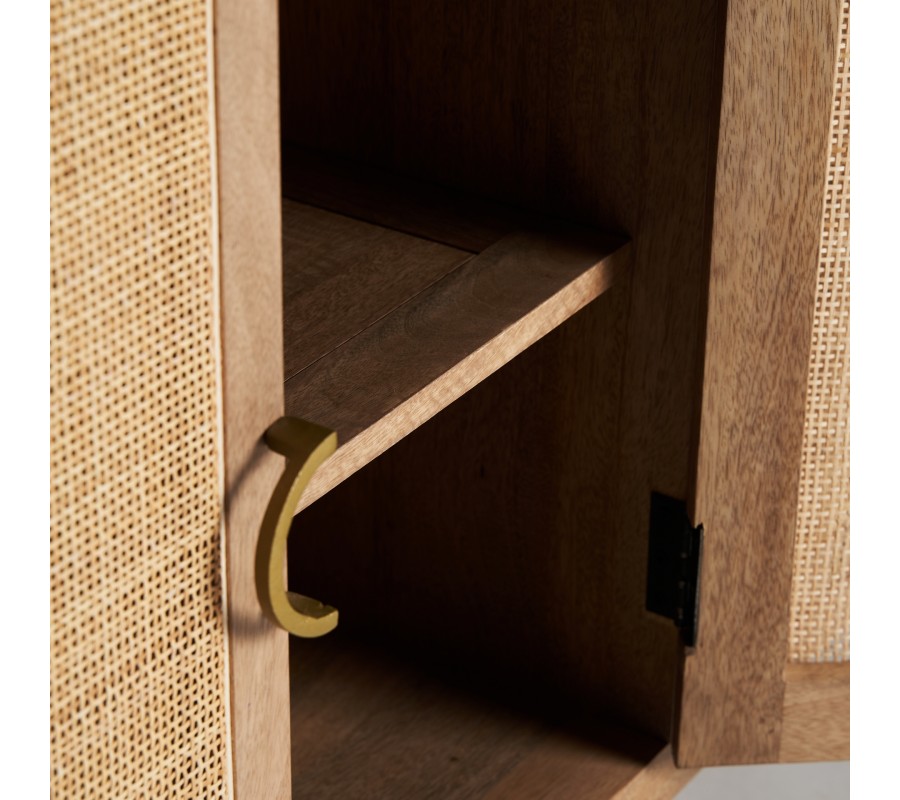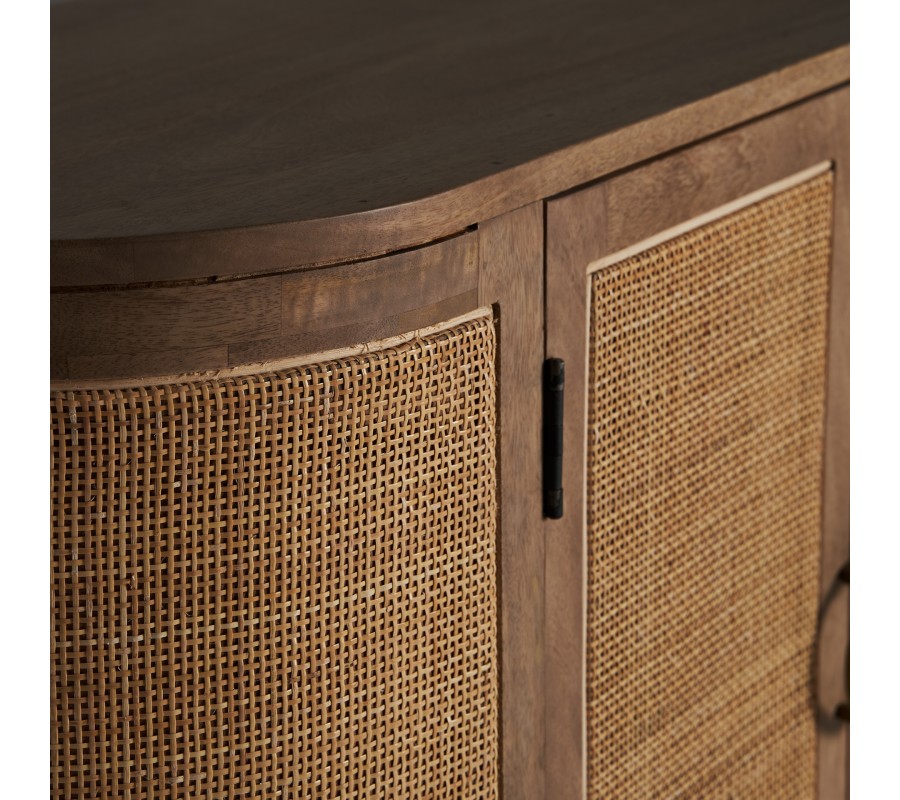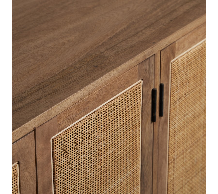 Příborník Lostan ve skandinávském stylu z mangového hnědého dřeva a ratanovým výpletem dvířek ve světle hnědé barvě 220cm