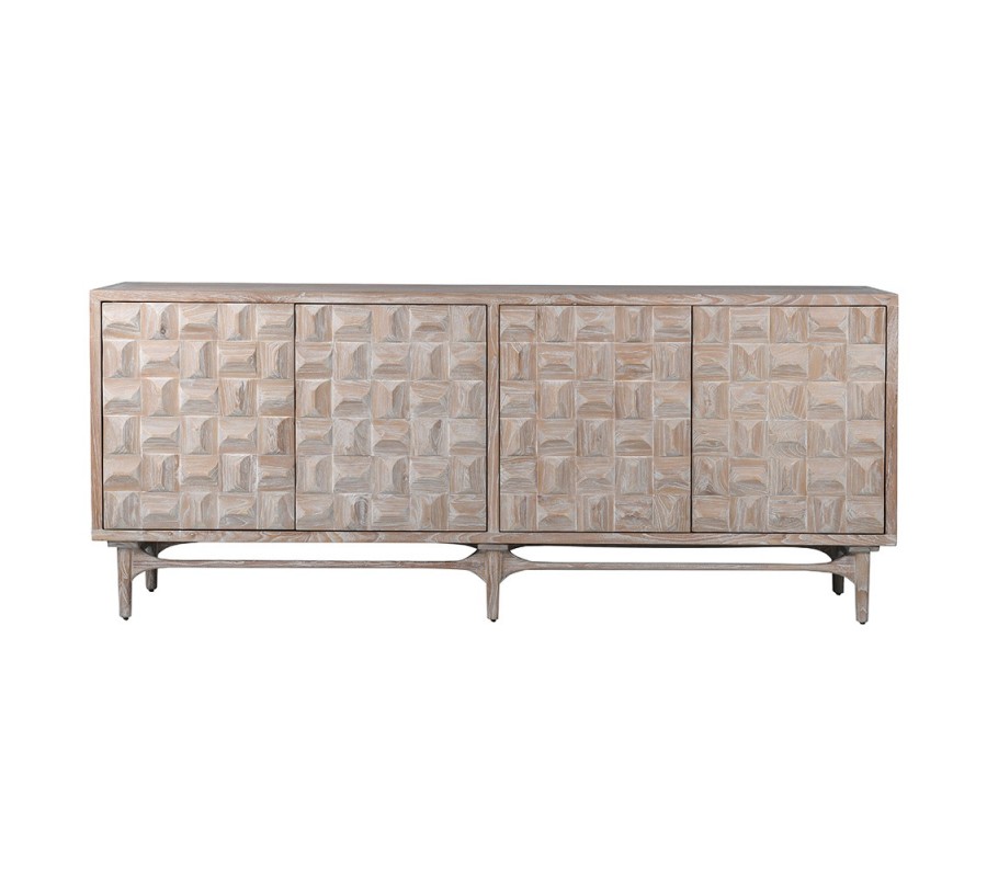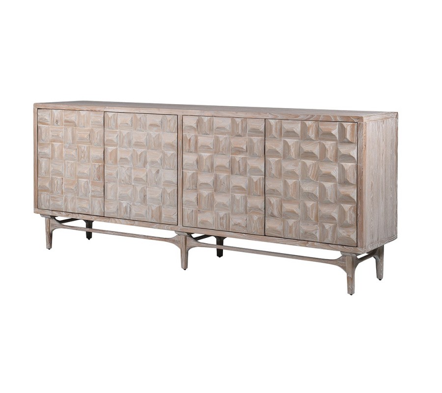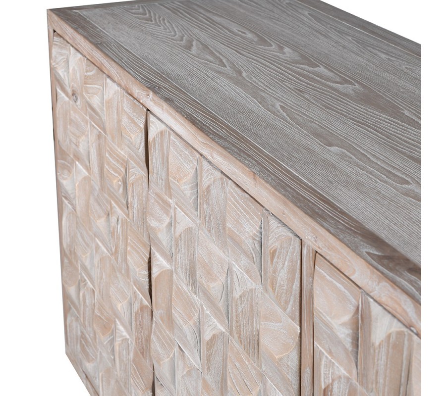 Luxusní art deco příborník Cubaro z masivního dřeva se čtyřmi dvířky a 3D reliéfním vzorem 210 cm