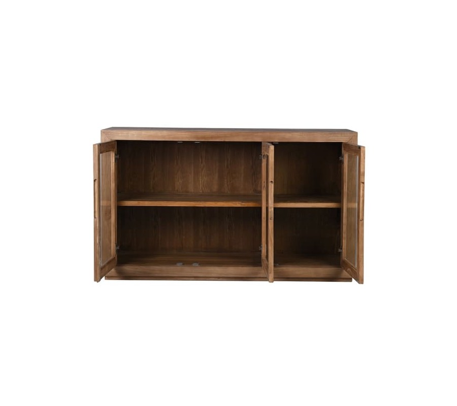 Příborník Heritage je luxusní kousek nábytku vyrobený z masivního recyklovaného jilmového dřeva v hnědém odstínu, který nese silný přírodní charakter. Povrch zdobí výrazná kresba letokruhů, která zvýrazňuje autenticitu a jedinečnost každého kusu.