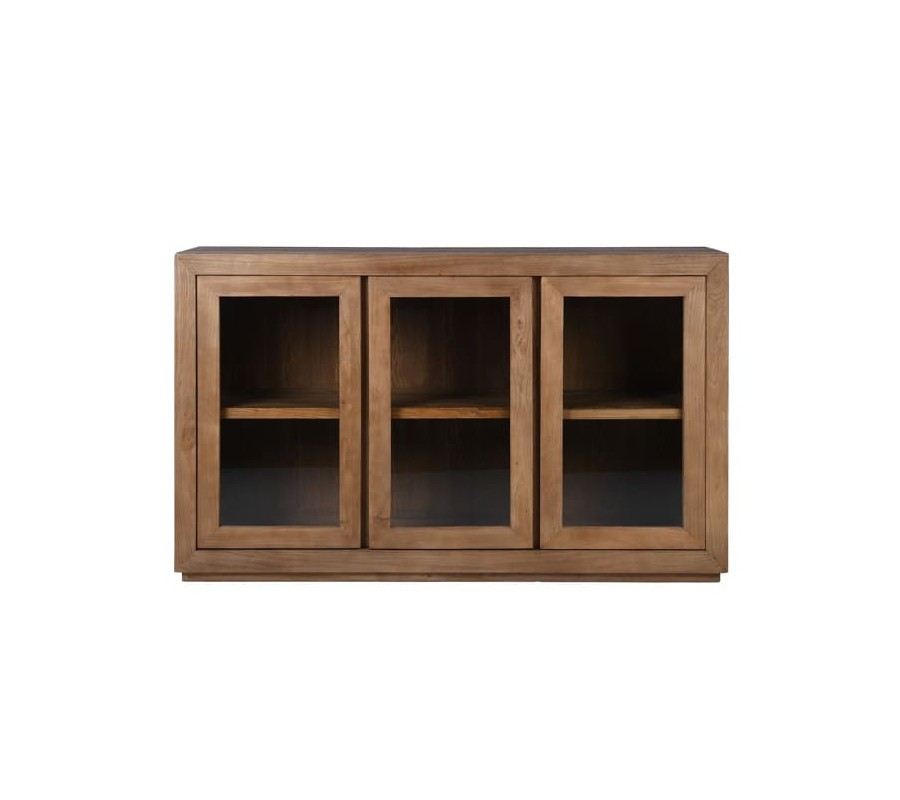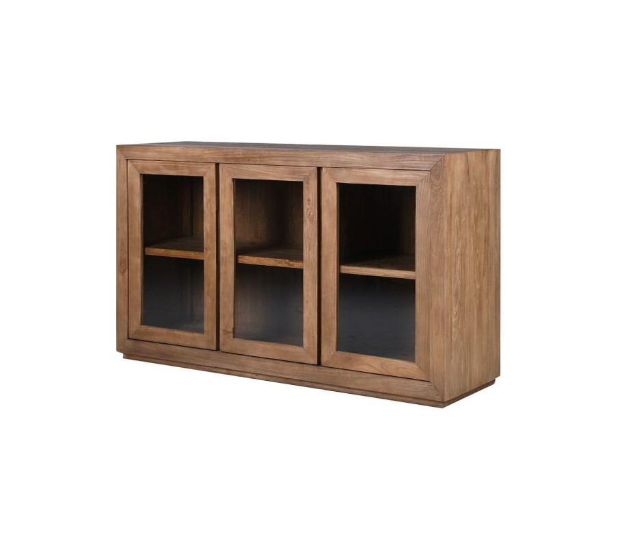 Luxusní designový třídveřový příborník Heritage třídveřový z masivního recyklovaného dřeva s prosklenými dvířky 150 cm