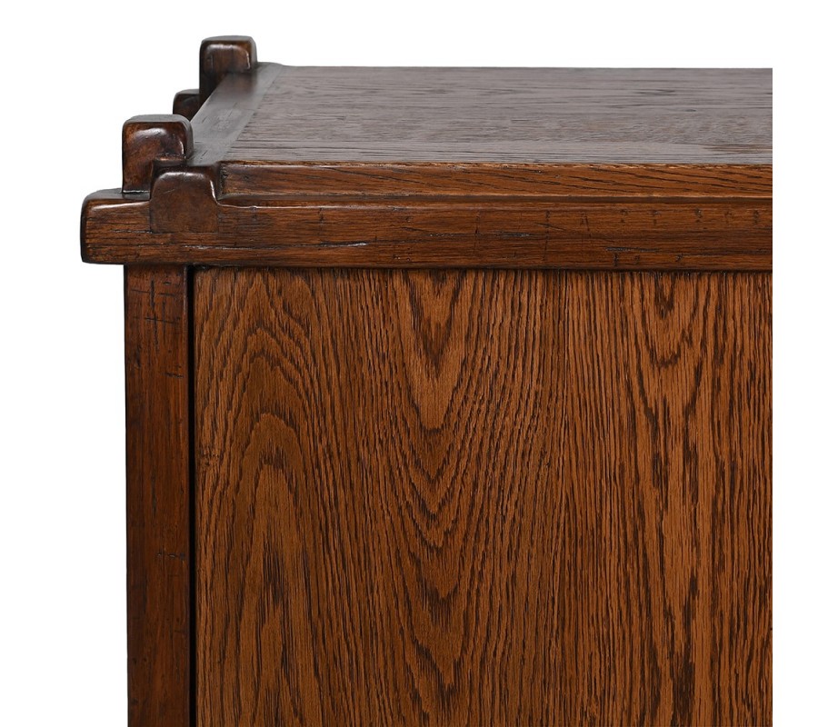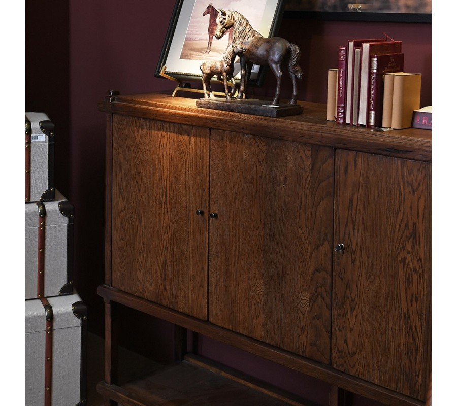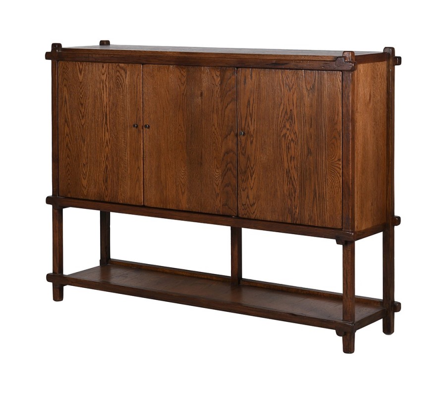 Příborník je vyroben z recyklovaného dubového dřeva. Jeho původ mu dodává autentický retro charakter, zatímco samotné dřevo je mimořádně pevné a odolné. Povrchová úprava v teplé hnědé barvě nechává vyniknout estetickou kresbu letokruhů, která ještě zdůrazní přírodní vizuál.
