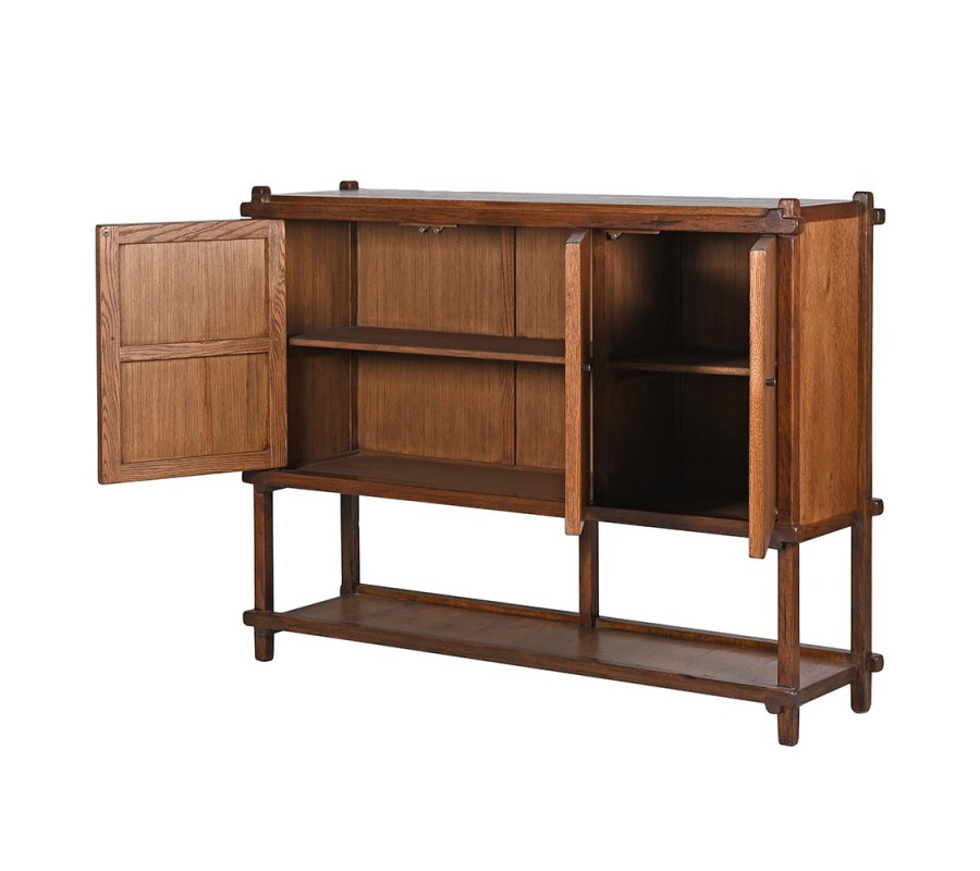 Úložný prostor sestává z jedné dvoudveřové a jedné jednodveřové skříňky. Uvnitř jsou předěleny policí a poskytují tak dostatek místa pro uskladnění nádobí či kuchyňských textilií. Dvířka se otevírají pomocí kulatých úchytek z kovu v tmavém patinovaném provedení.