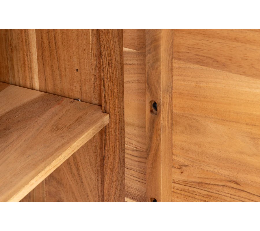 Příborník Tallero má čistý obdélníkový tvar a je vyroben z masivního akáciového dřeva v příjemném hnědém odstínu se zachovanou přirozenou kresbou, která dodává nábytku teplý a autentický vzhled.