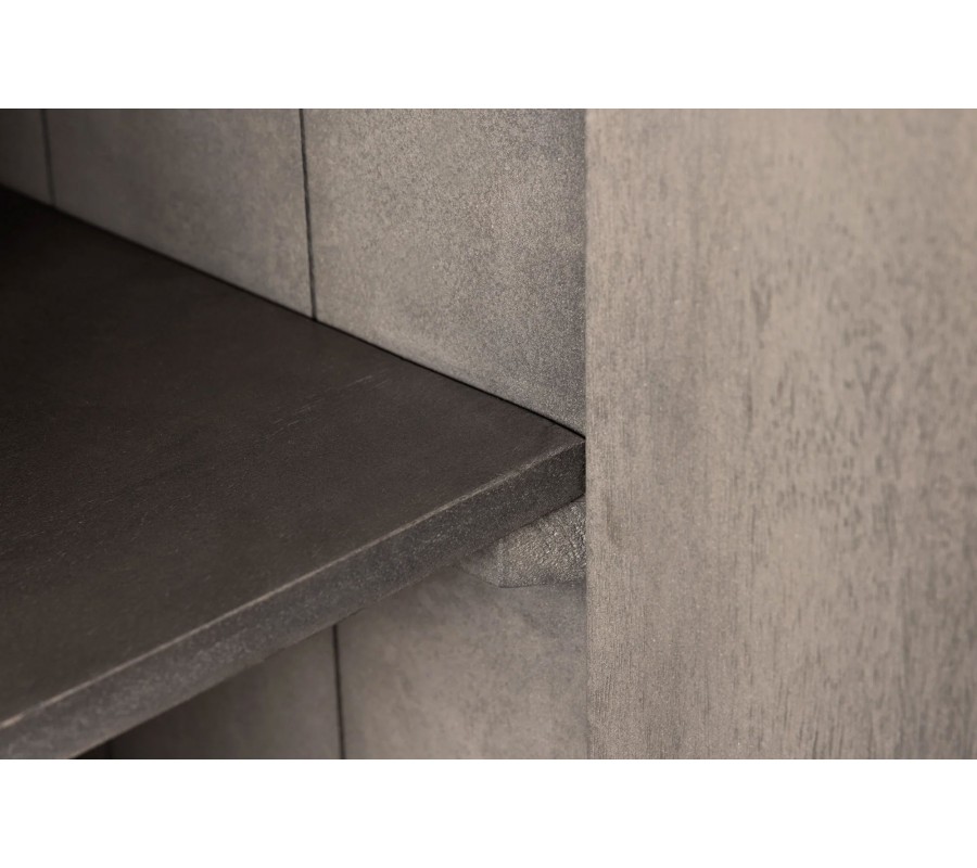 Vrchní a boční strany jsou hladké a vyniká na nich přirozená kresba letokruhů masivního mangového dřeva. Povrchová úprava v šedé barvě působí elegantně a přiznaná tmavší struktura zase přináší do designu naturální element. Mangové dřevo je také pevné a zaručí výbornou odolnost a trvanlivost nábytku.