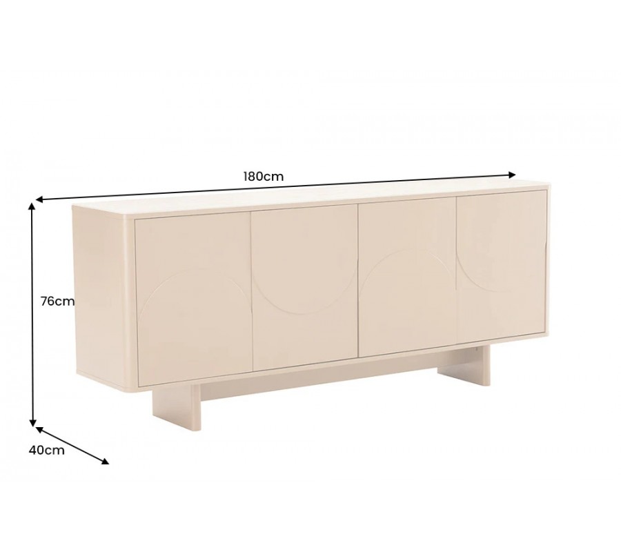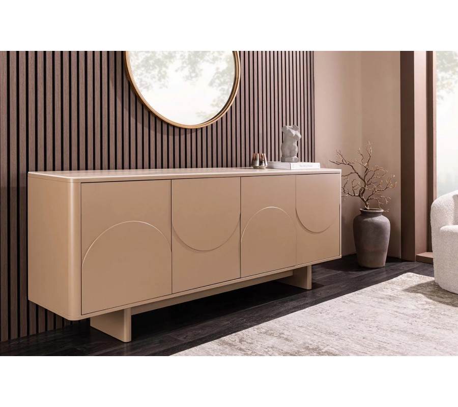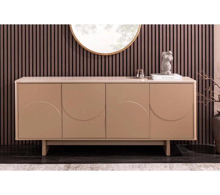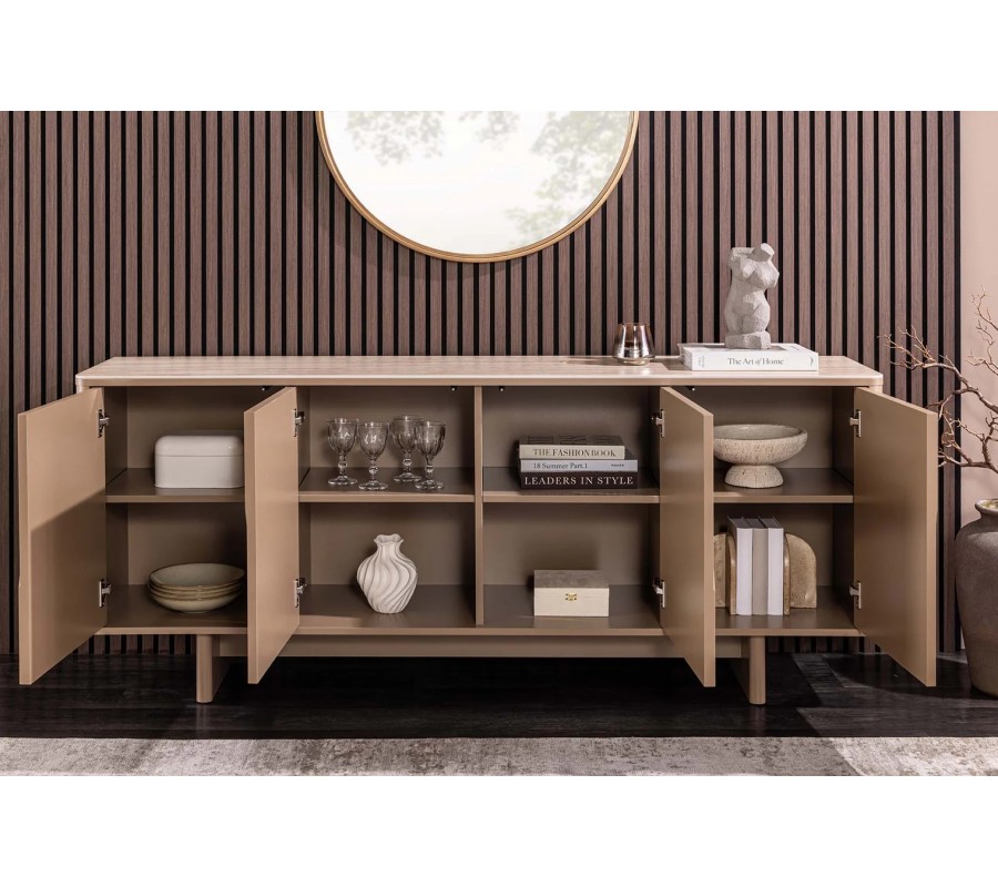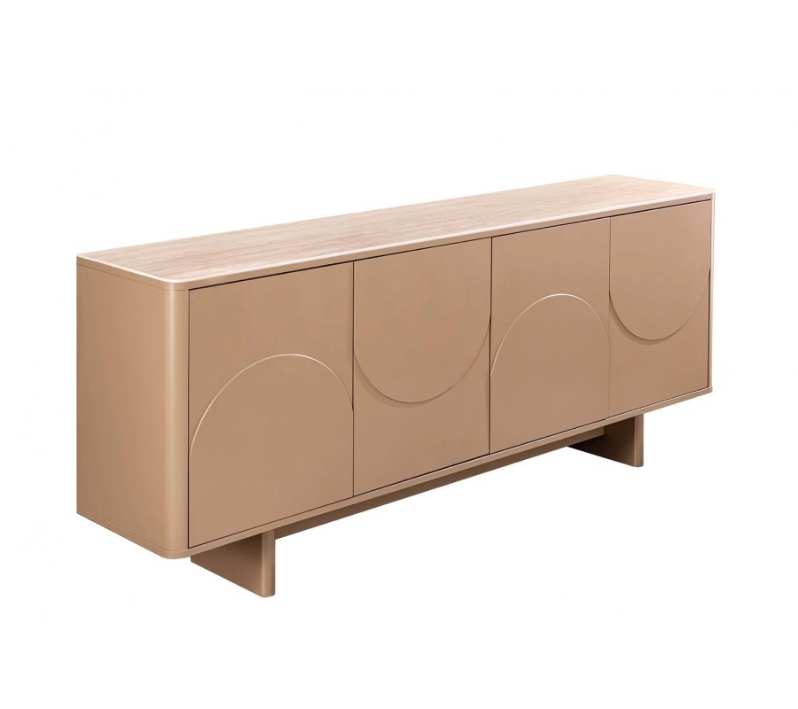 Art deco obdélníkový čtyřdveřový příborník Savonia s travertinovou deskou v hnědé barvě a 3D reliéfy 180 cm
