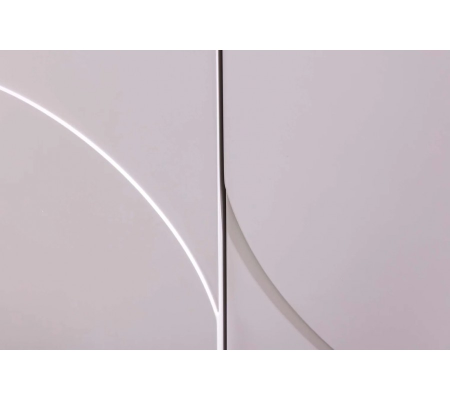Art deco geometrický příborník Savonia je výrazným designovým kusem, který působí elegantně, moderně a zároveň nadčasově. Obdélníkové tělo příborníku je vybaveno čtyřmi dvířky, přičemž boční skříňky mají po jedněch dvířkách a středová část dvoje. Uvnitř se nachází prakticky řešený úložný prostor – v bočních skříňkách je po vertikální deskou na dvě části, přičemž každá z nich má vlastní polici. Dvířka jsou ozvláštněna jemným 3D vlnkovým reliéfem, který vystupuje do prostoru a zároveň plní funkci integrovaných úchytek, čímž se zachovává čistý a minimalistický vzhled nábytku.