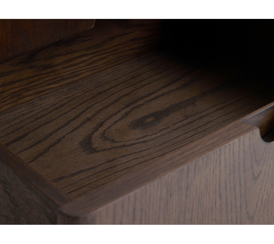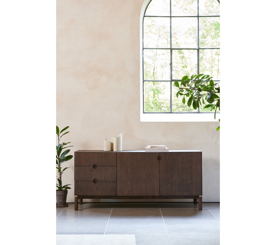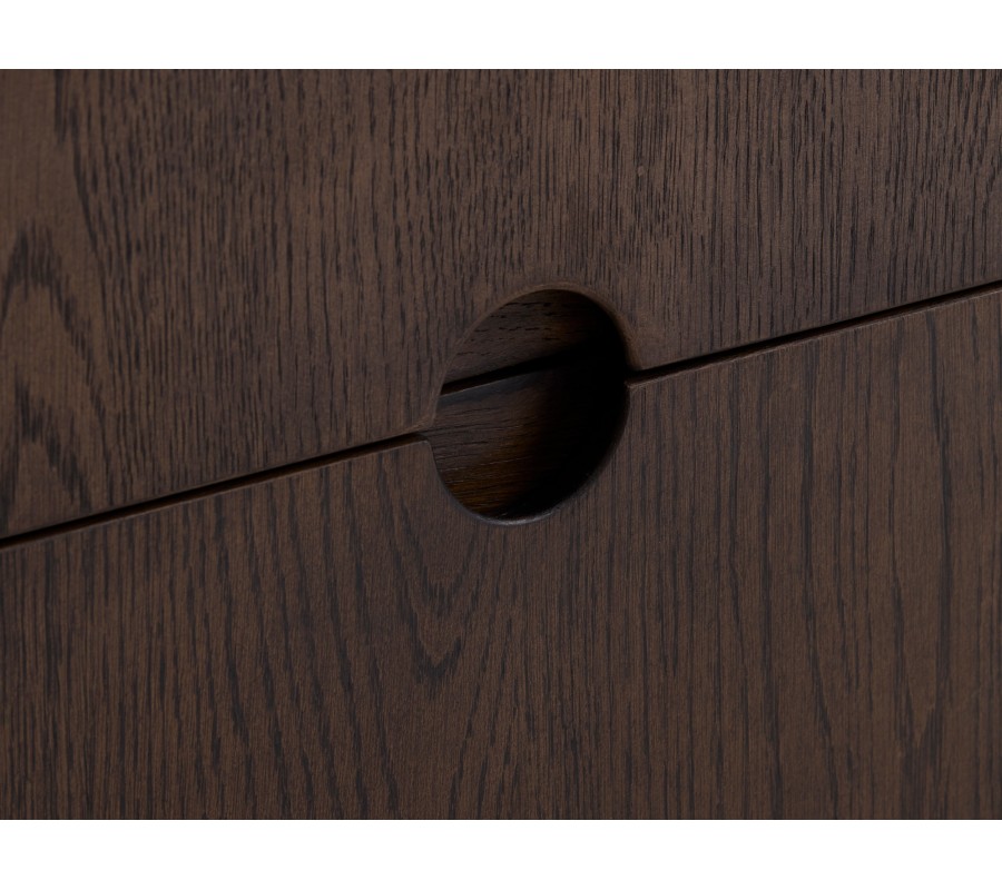 Příborník Linia vás okouzlí svým moderním minimalistickým designem s nádechem art deco stylu. Tmavé dubové provedení působí elegantně a zároveň přinese do prostoru pocit tepla.