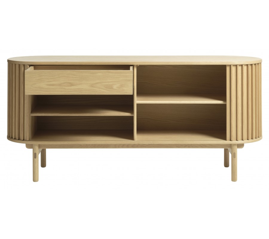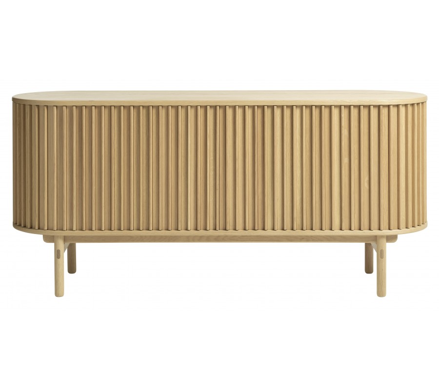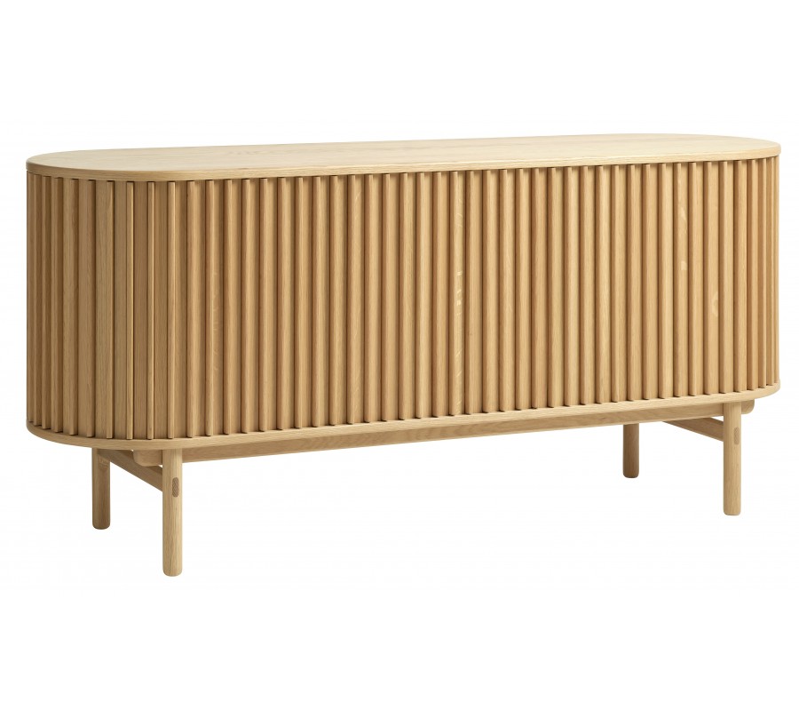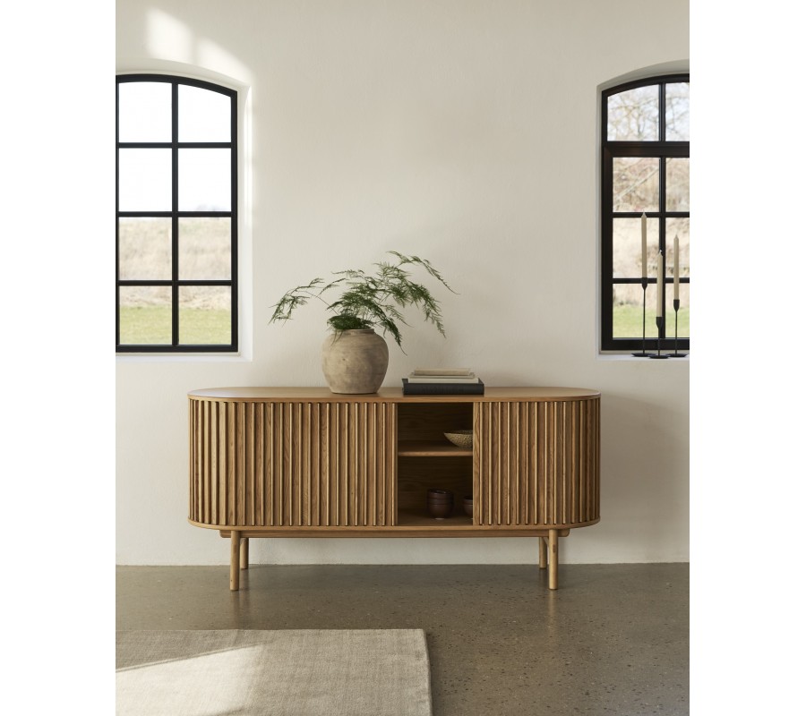 Skandinávský oválný příborník Roskilde s posuvnými drážkovanými dvířky v dubovém hnědém provedení 160 cm
