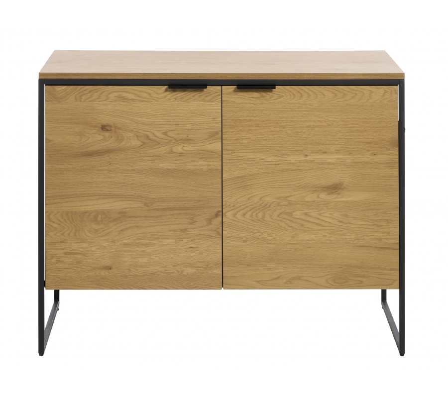 Designový industriální dvoudveřový příborník Holstebro ve světlém hnědém dubovém provedení s černým kovovým rámem 105 cm