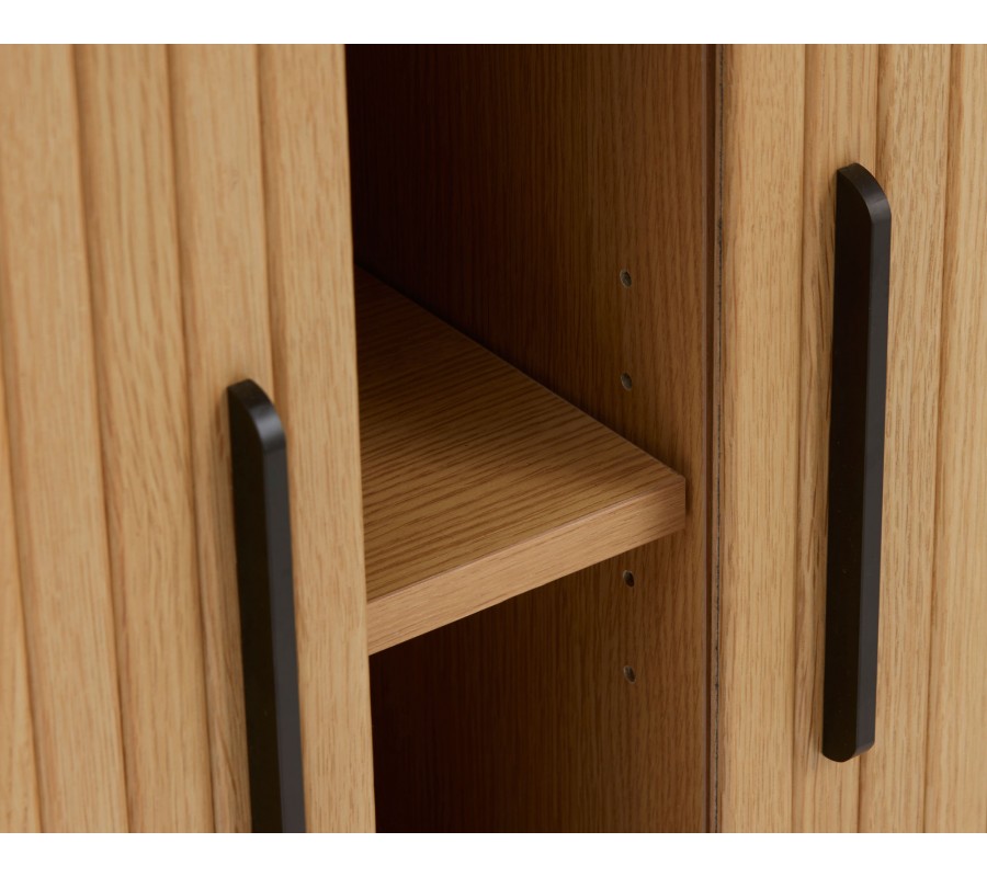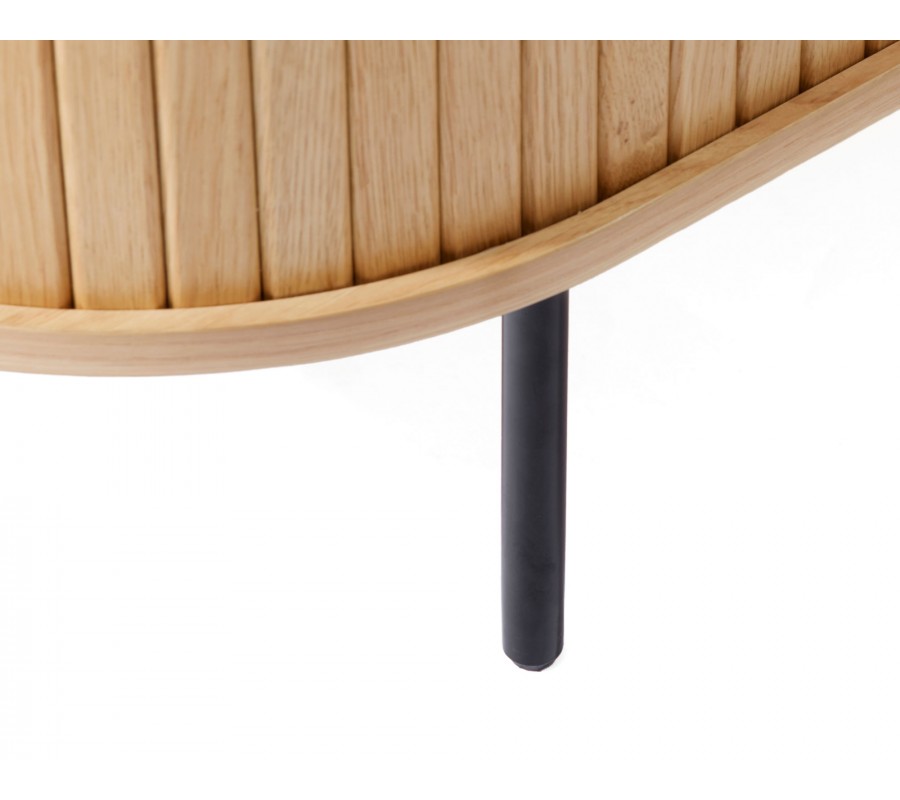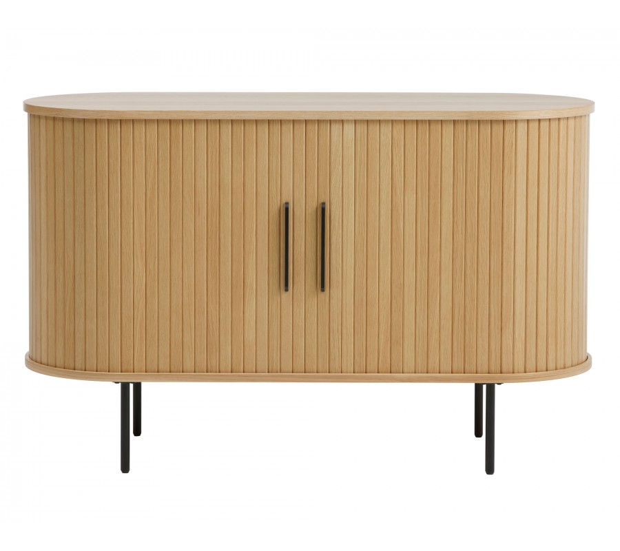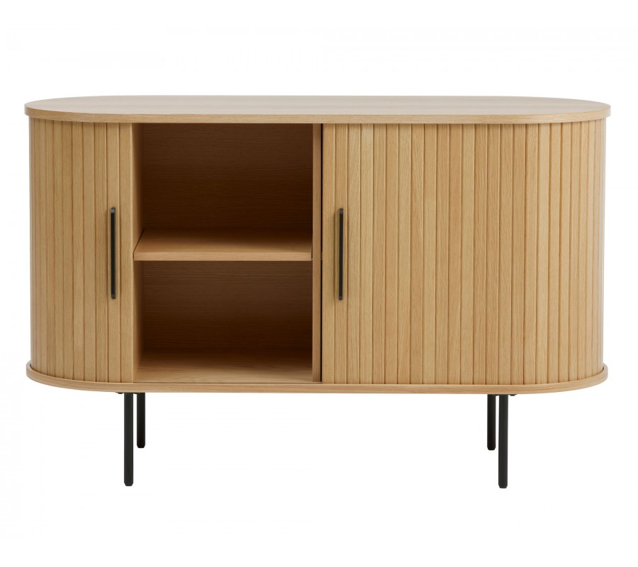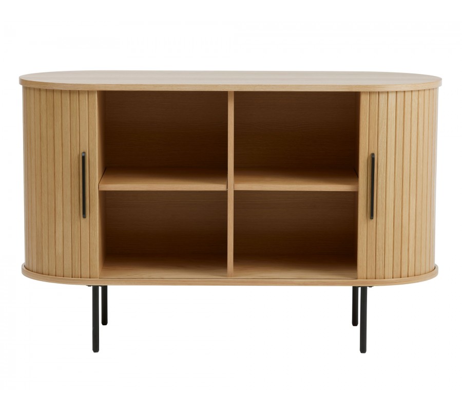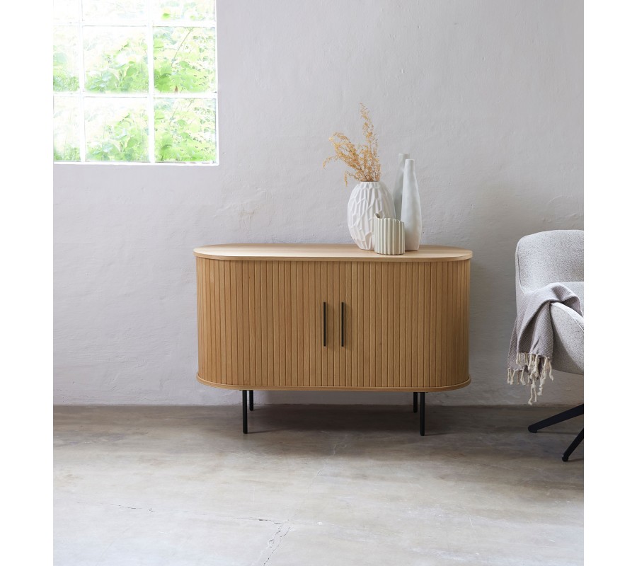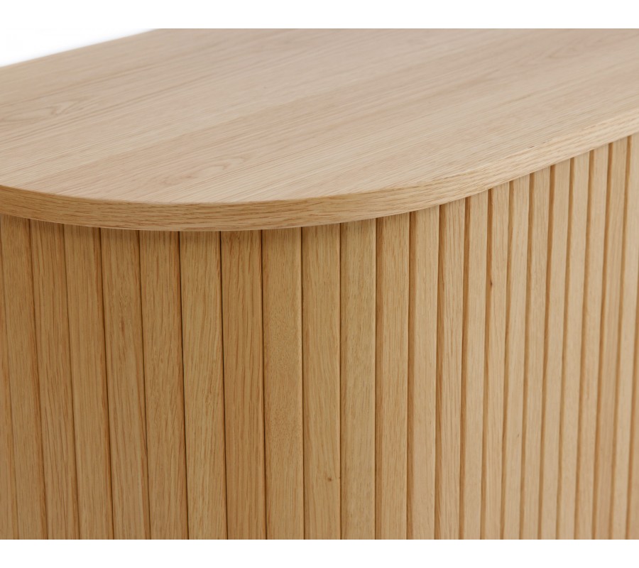 Skandinávský oválný příborník Bornholm se dvěma posuvnými lamelovými dvířky ve světlém hnědém dubovém provedení 120 cm