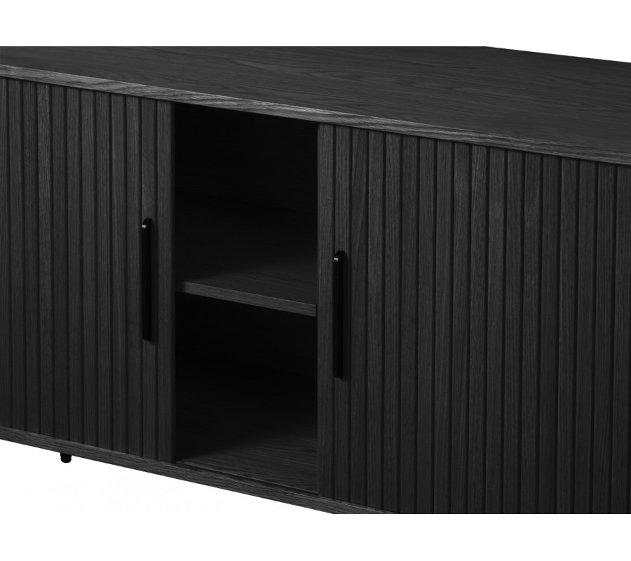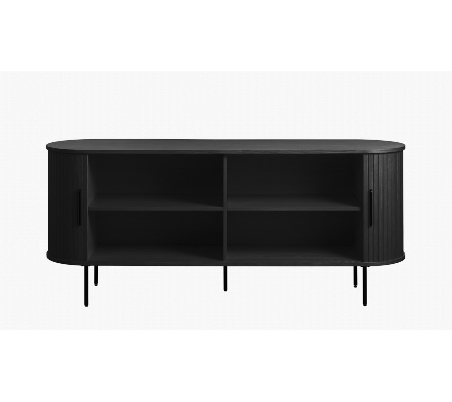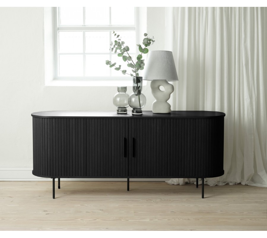 Moderní dvoudveřový oválný příborník Bornholm v černé barvě s posuvnými dvířky s vertikálními lamelami 180 cm